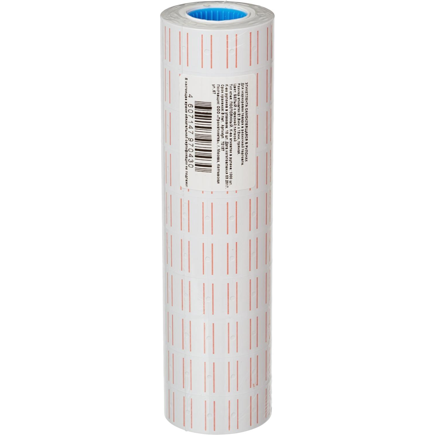 О товаре «Этикет-лента прямоугольная белая с красной полосой 21.5х12 мм стандарт (10 рулонов по 1000 этикеток)»