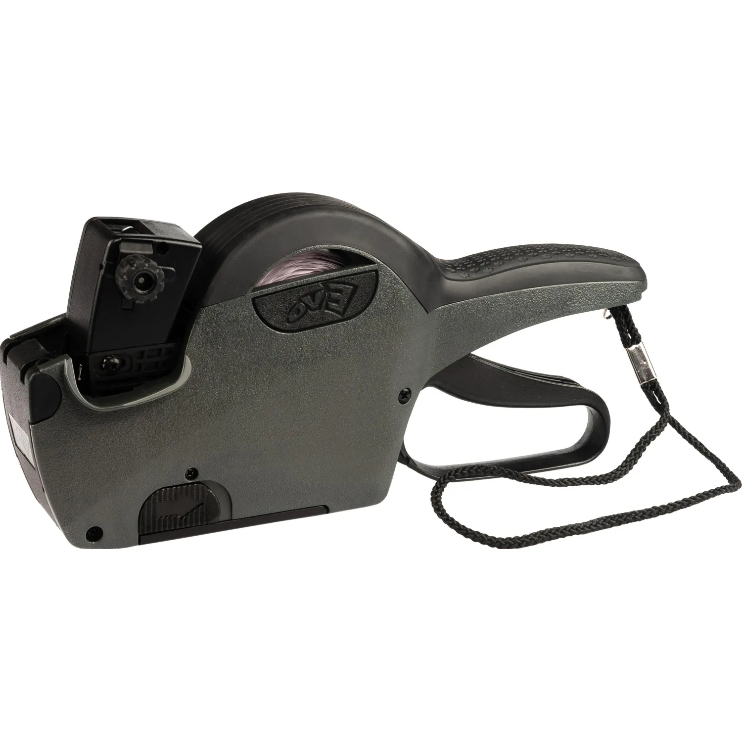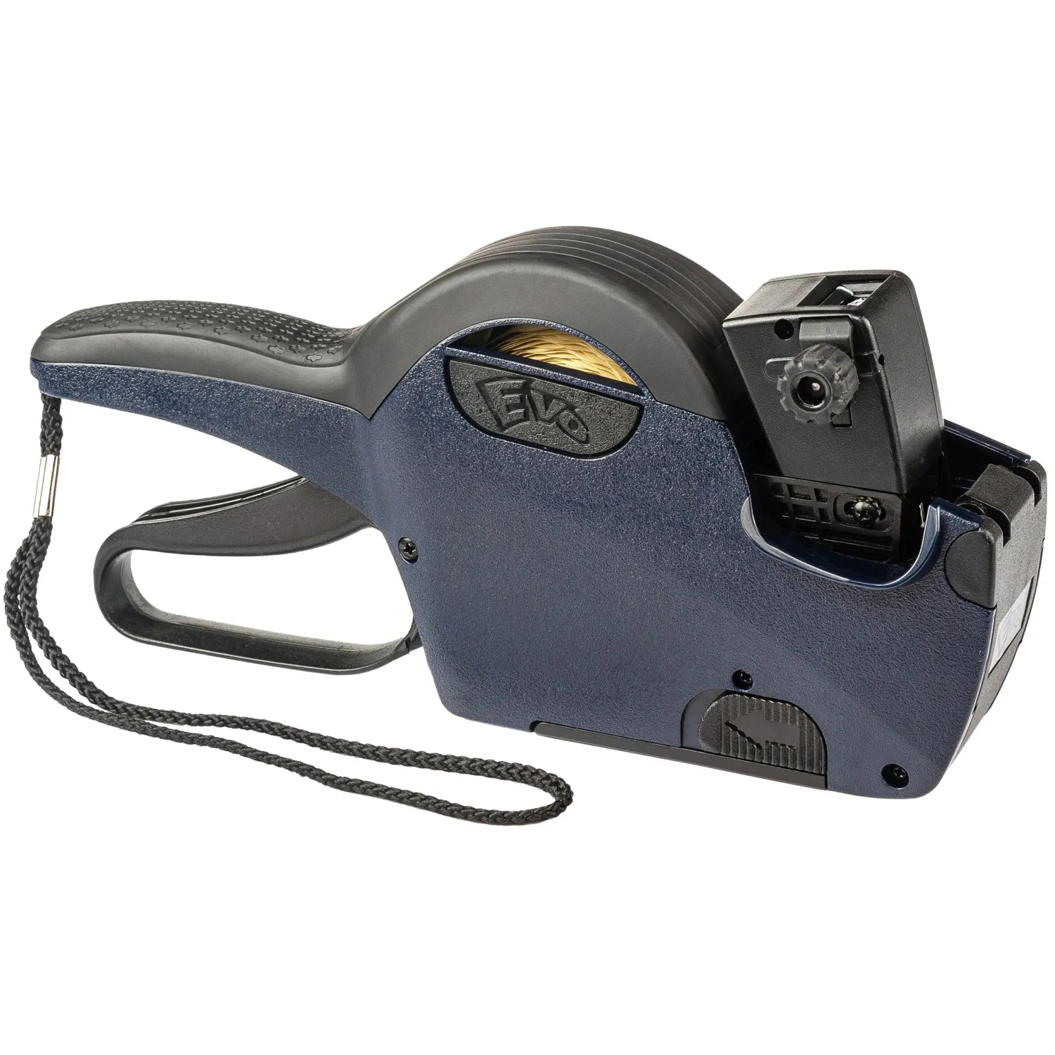 «Этикет-пистолет EVO с эргономичным дизайном предназначен для маркировки товара этикетками с ценой, артикулом, датой, сроком годности и т. д. Работает этикетками типа 'волна' размером 26×12 мм. Однострочный, максимальное количество знаков в строке: 8. Поддерживает цифры и значки валют (включая рубль, доллар, евро). Без обозначения граммов. В комплекте один чернильный ролик (заряжен в пистолет).
