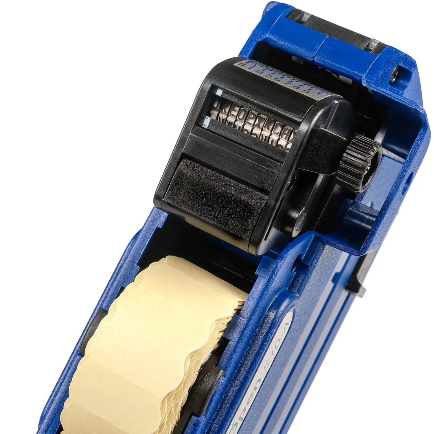 «Этикет-пистолет для печати в одну строку до 10 знаков с использованием кириллических символов и арабских цифр. Размер шрифта составляет 2,2 на 4,5 мм. Печать производится на этикетки размером 26 на 12 мм. Используется для проставления цены и артикула на товарах в розничной торговле. Имеет неограниченный срок хранения. В качестве расходных материалов можно использовать: