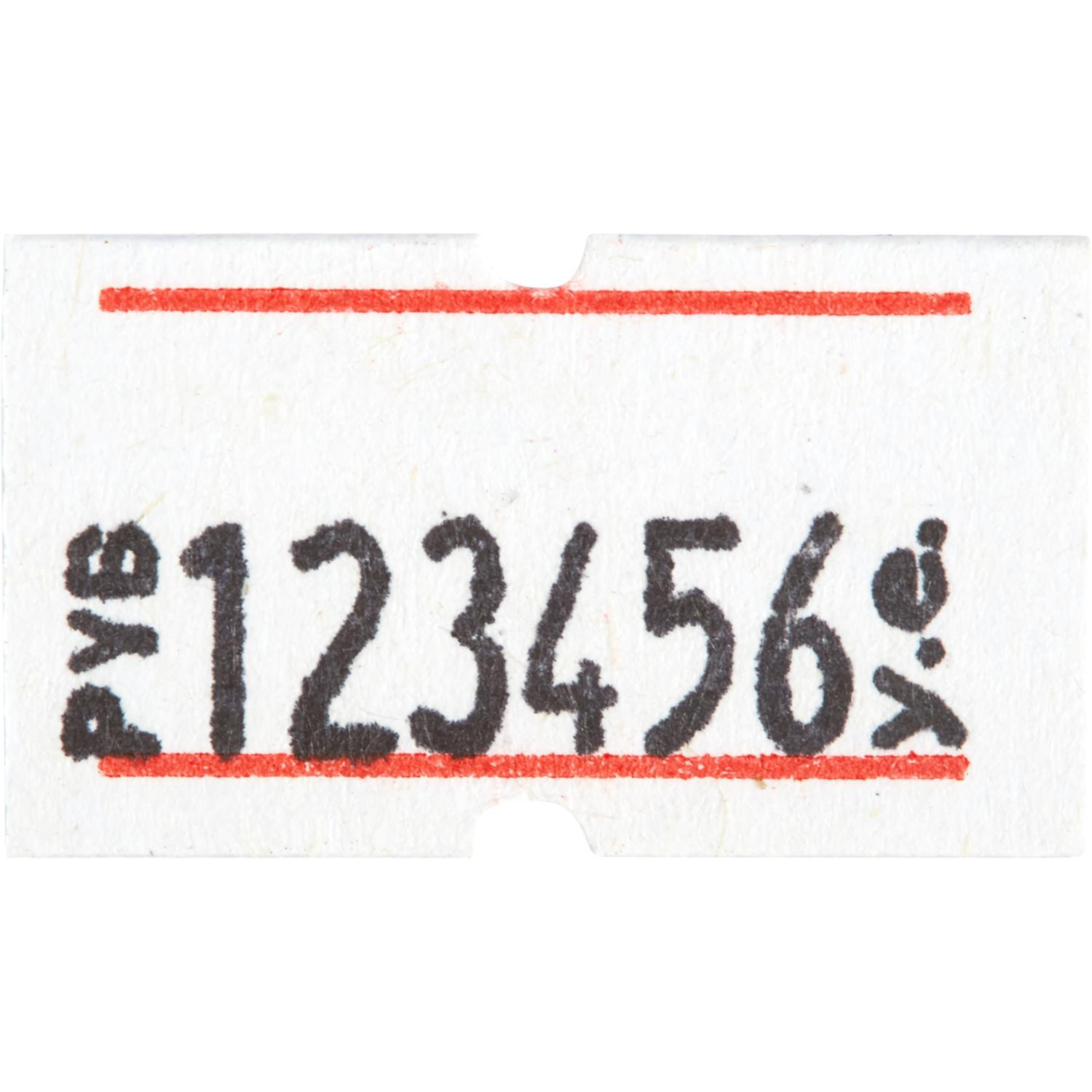 арт. 72137 Этикет-лента прямоугольная белая с красной полосой 21.5×12 мм (10 рулонов по 1000 этикеток)