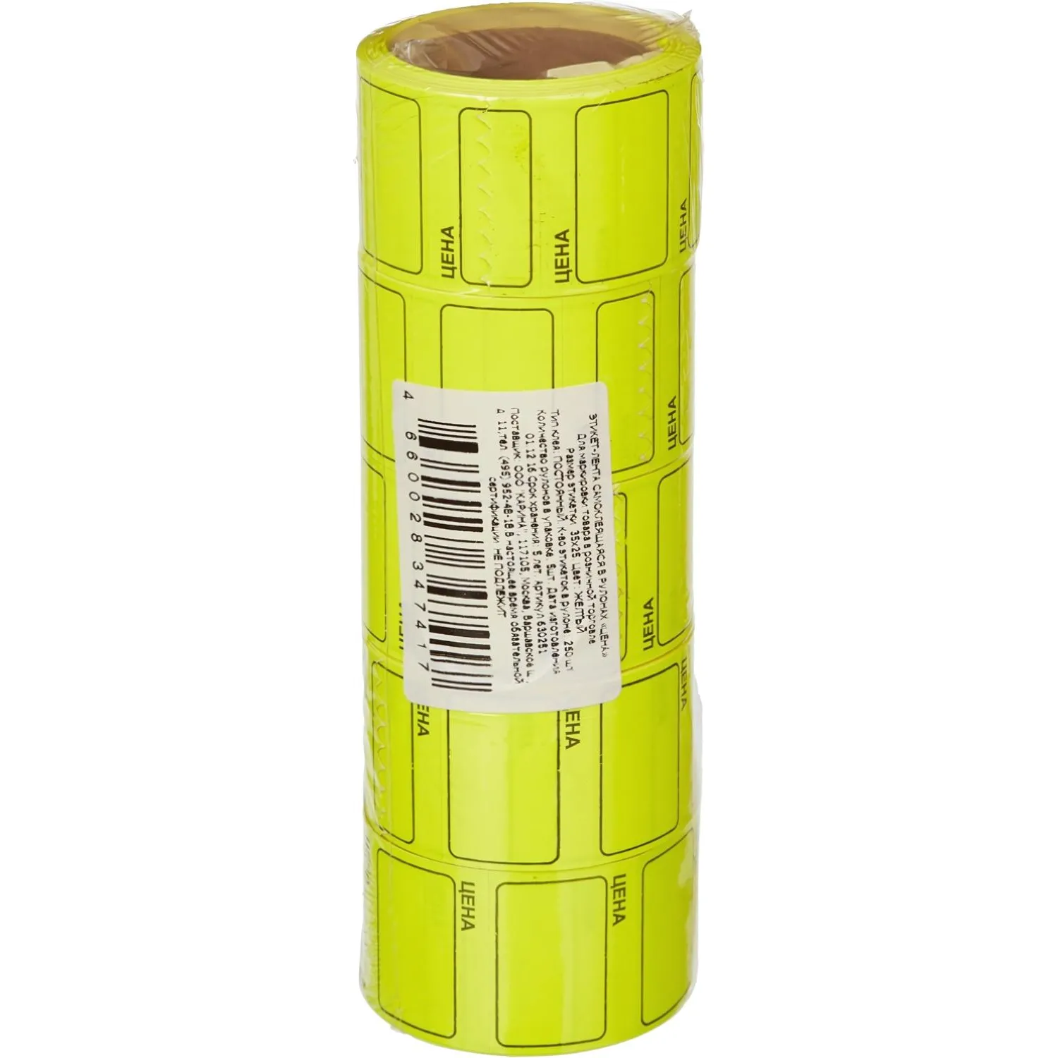 О товаре «Ценники самоклеящиеся 35х25 мм желтые (5 рулонов по 250 этикеток)»