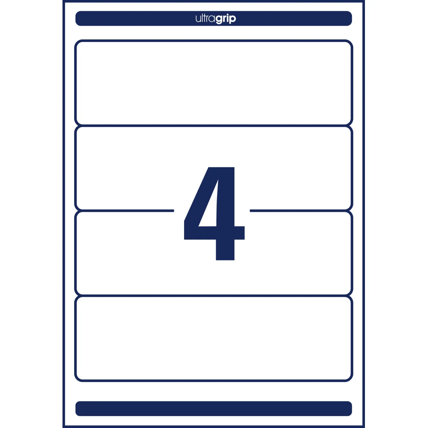 В упаковке 25 листов по 4 этикетки размером 192×61 мм. Цвет белый.