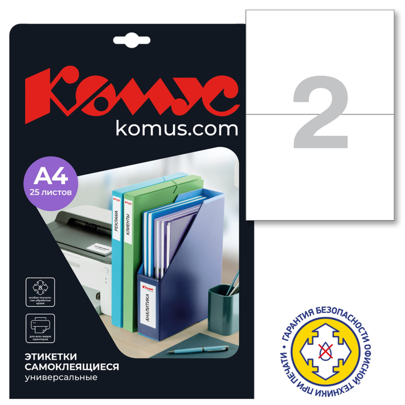 Этикетки самоклеящиеся Комус (ProMega Label) 210х148 мм 2 штуки на листе белые (25 листов в упаковке)
