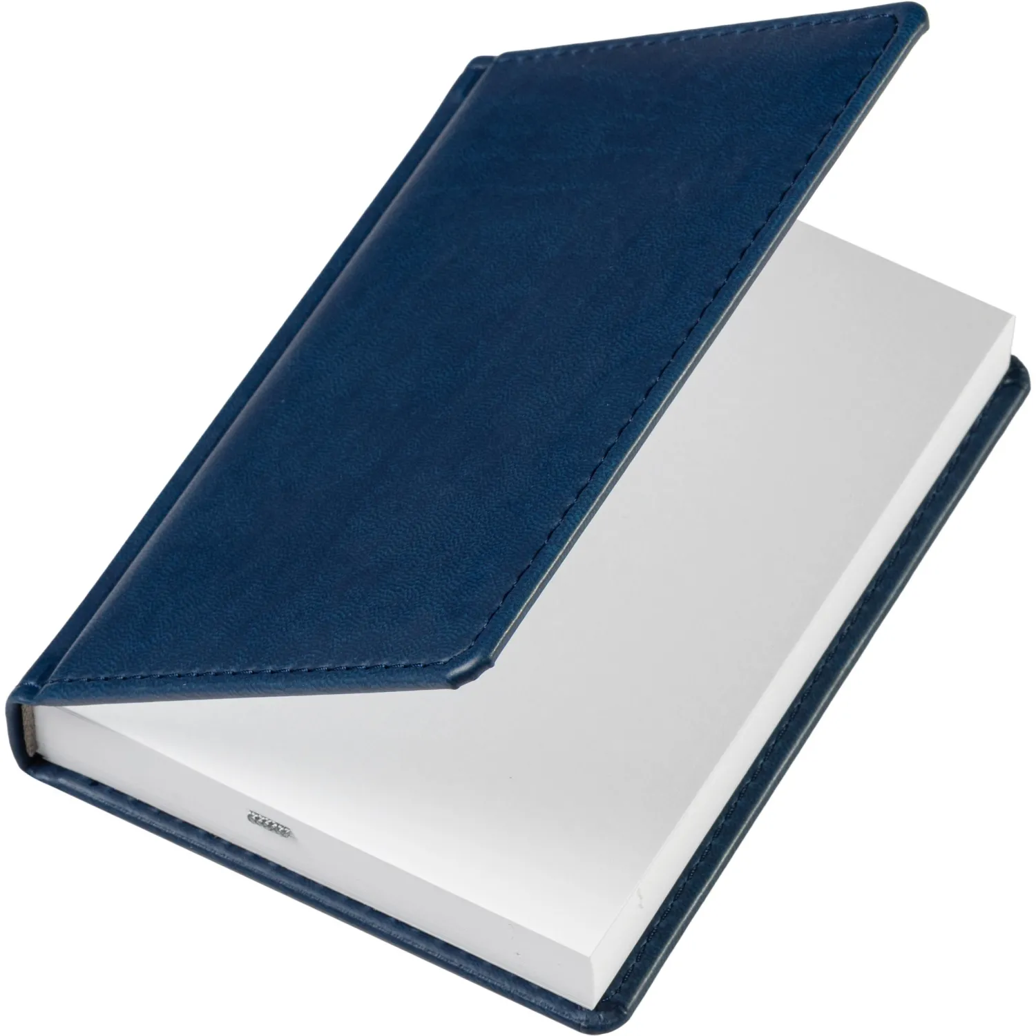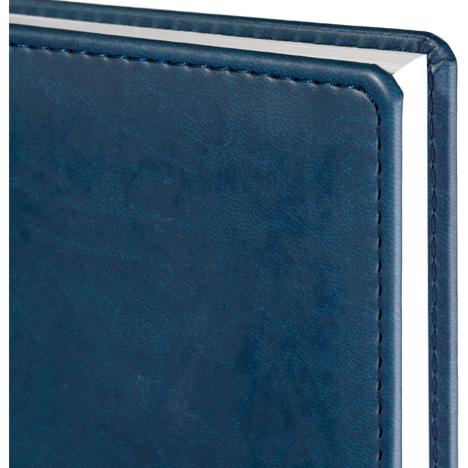 Ежедневник размером 110×155 мм выполнен с твёрдой однотонной синей обложкой из высококачественного переплётного материала с матовой гладкой фактурой, имитирующей натуральную кожу. Обложка допускает нанесение логотипа любым способом тиснения — блинт или фольга. Логотип расположен на нижней части обложки.