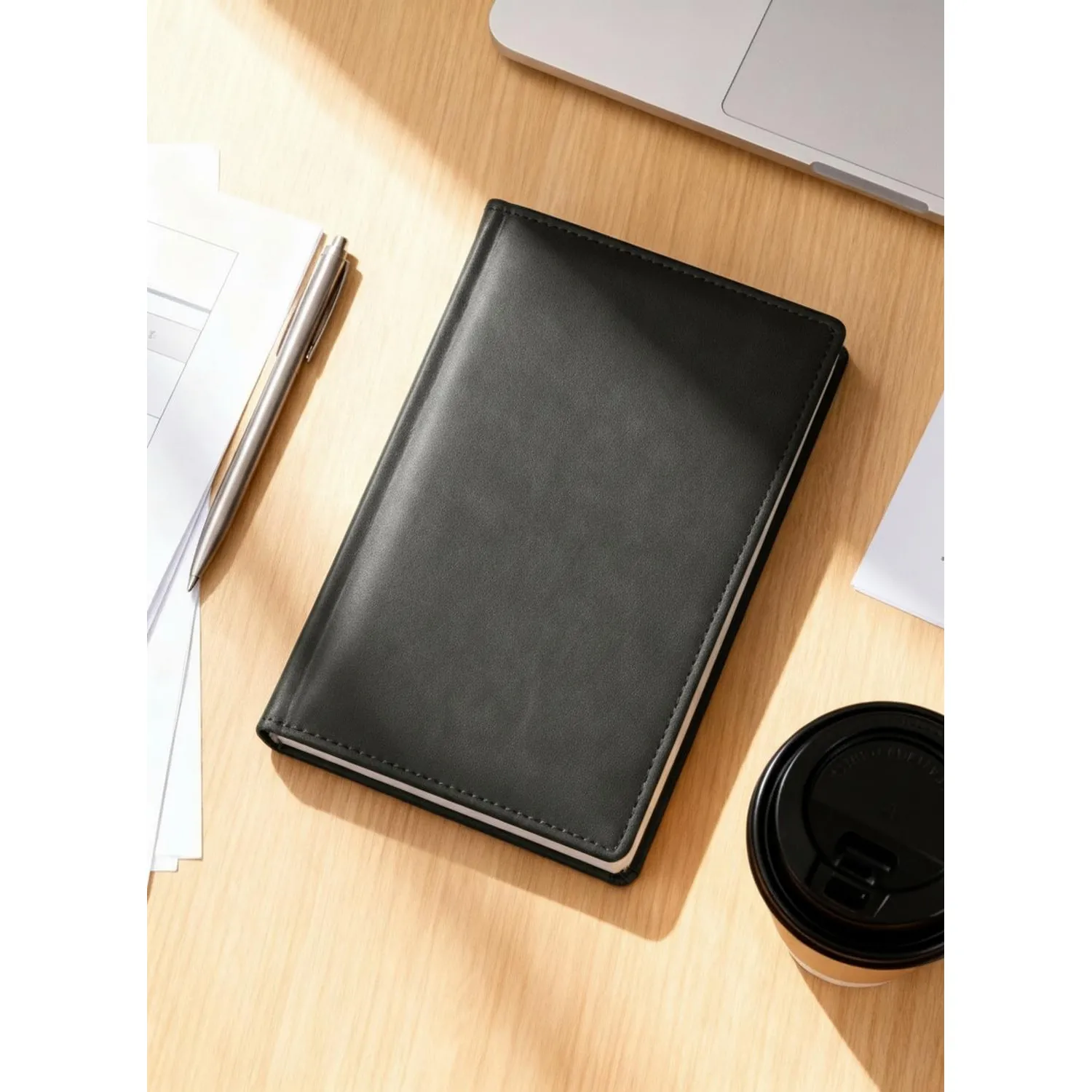 Ежедневник недатированный Attache «Вива», выполненный из искусственной кожи, формат A5, содержит 176 листов (352 страницы). Ежедневник размером 148×218 мм имеет твёрдую однотонную обложку с матовой гладкой поверхностью и поролоновым наполнителем. По периметру обложки выполнена отделочная строчка в цвет материала, придающая изделию аккуратный и строгий вид. Материал обложки подходит для тиснения блинтом или фольгой.
