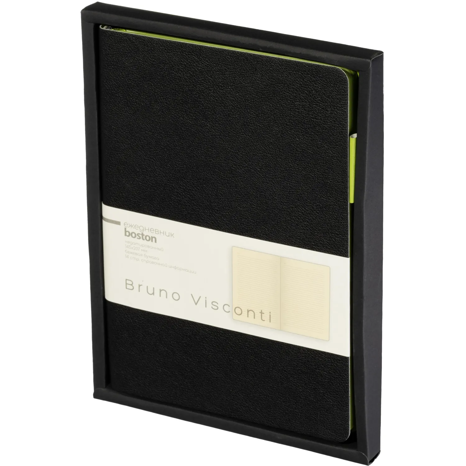 О товаре «Ежедневник недатированный Bruno Visconti Boston искусственная кожа А5 136 листов чёрный (зелёный обрез), 3-228/04»