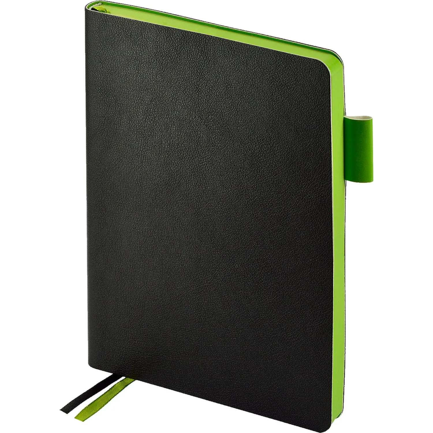 Ежедневник недатированный Bruno Visconti Boston формата A5 с 136 листами, чёрного цвета (зелёный обрез). Ежедневник с мягкой обложкой из искусственной кожи, выполненный в чёрном цвете, привлекает внимание своей утончённой элегантностью. Шероховатая текстура обложки придаёт изделию благородство, а цветной зелёный обрез сочетает сдержанность и дерзость. Двойное ляссе и красивое оформление блока создают гармоничное сочетание с белой бумагой, плотностью 90 г/кв.м. и скруглёнными уголками.