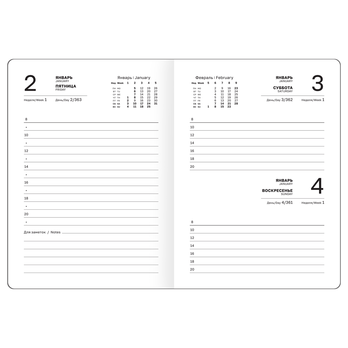 Формат – А6 (105*145 мм). Изделие состоит из 176 листов белой бумаги плотностью 65 г/м2, которая подходит для любых типов ручек и не будет просвечиваться. В линованный блок с полем для даты и планингом удобно записывать встречи, идеи и задачи. Уголки листов с перфорацией. Закладка-ляссе позволит быстро и легко найти нужную страницу, что делает навигацию по ежедневнику удобной и эффективной. В ежедневнике предусмотрена справочная информация, ежемесячный планер, календарь и другие полезные сведения. Индивидуальная упаковка в термоусадочную пленку.