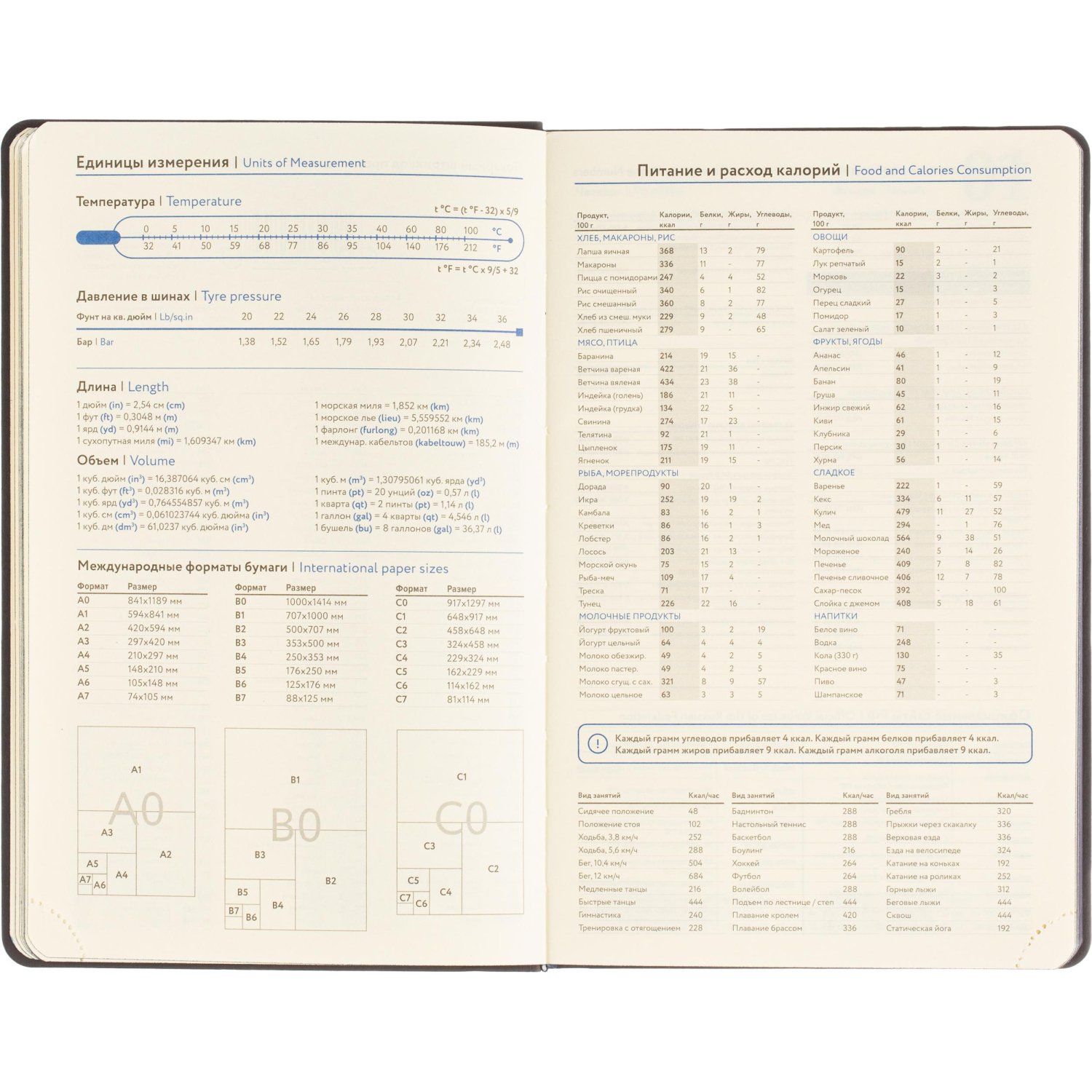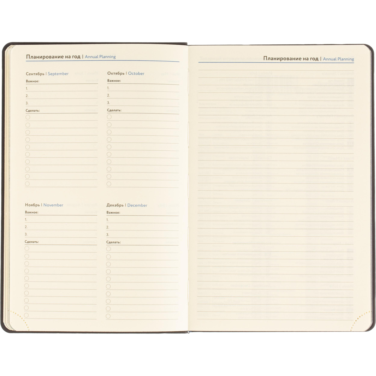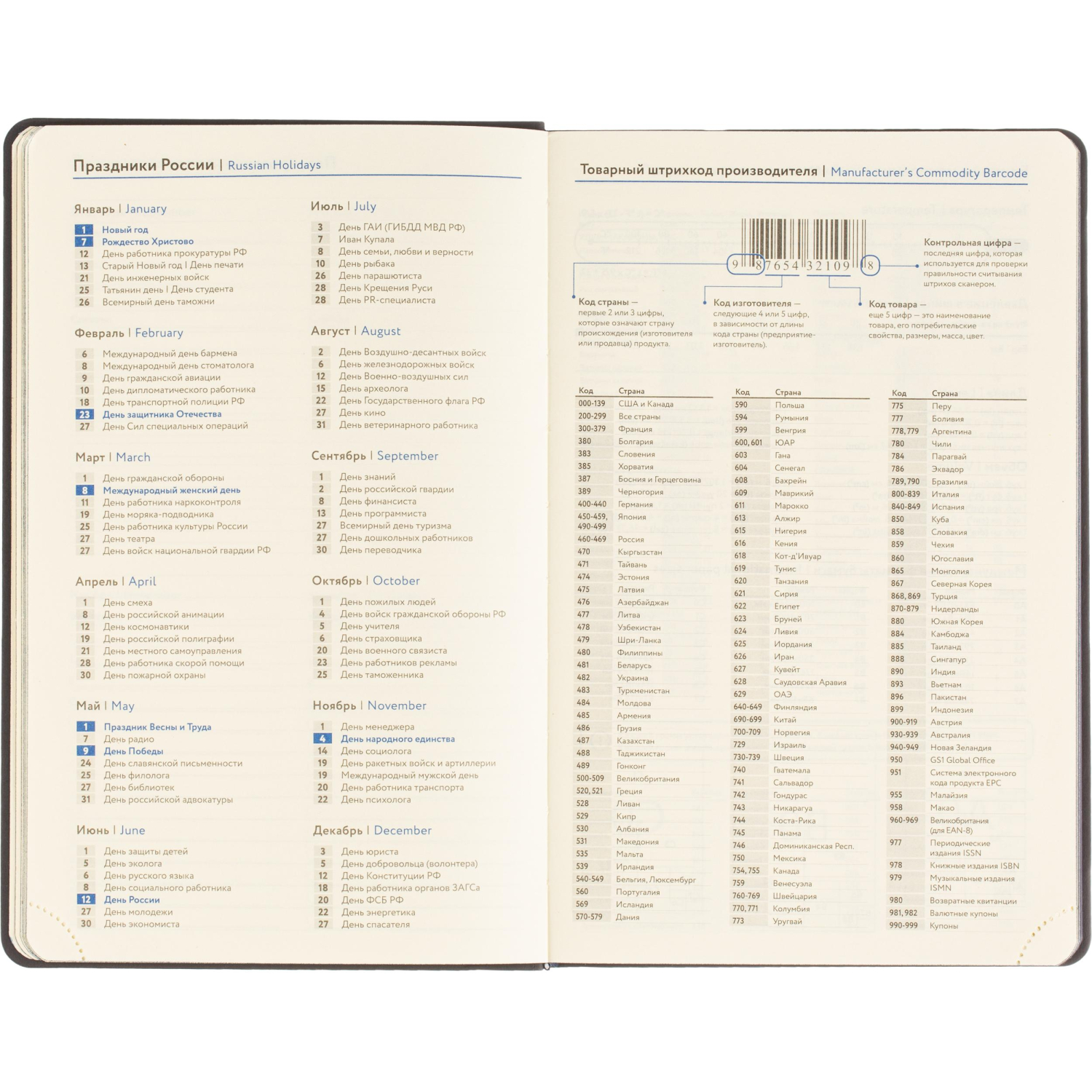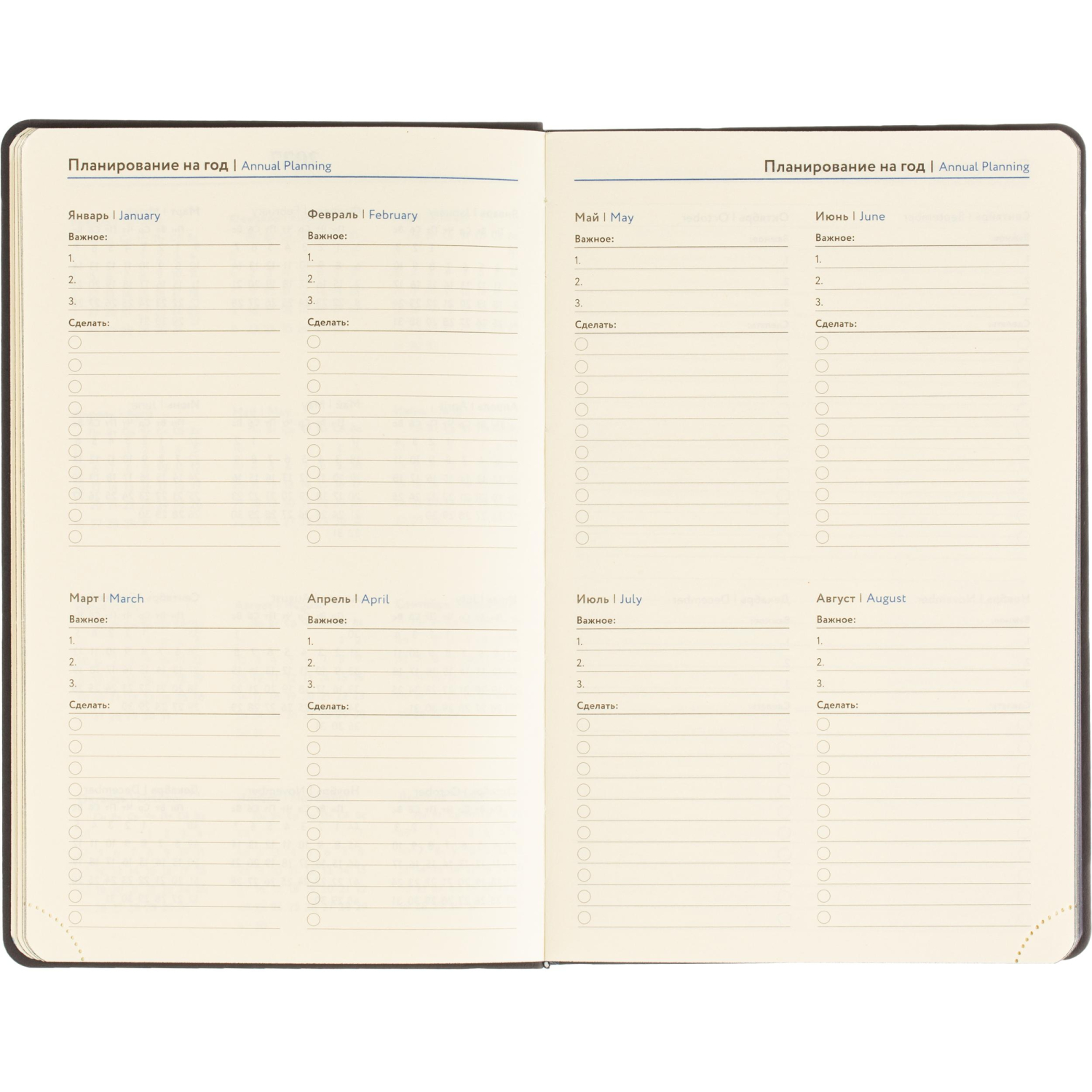 Размер ежедневника составляет 13.8×21.3 см. Внутри предусмотрен календарь на два года. Модель подходит под персонализацию.