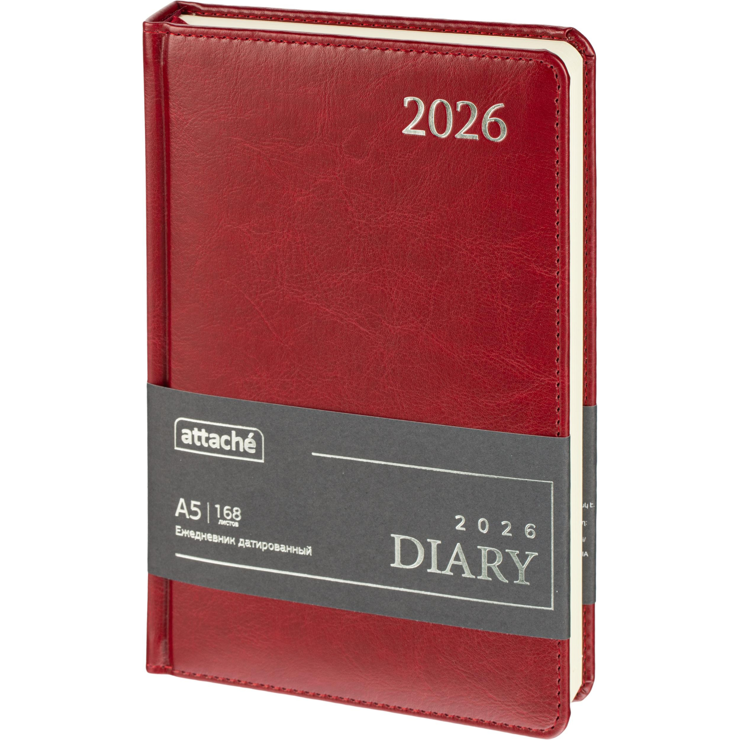 Ежедневник датированный 2026 год Attache искусственная кожа А5 168 листов бордовый