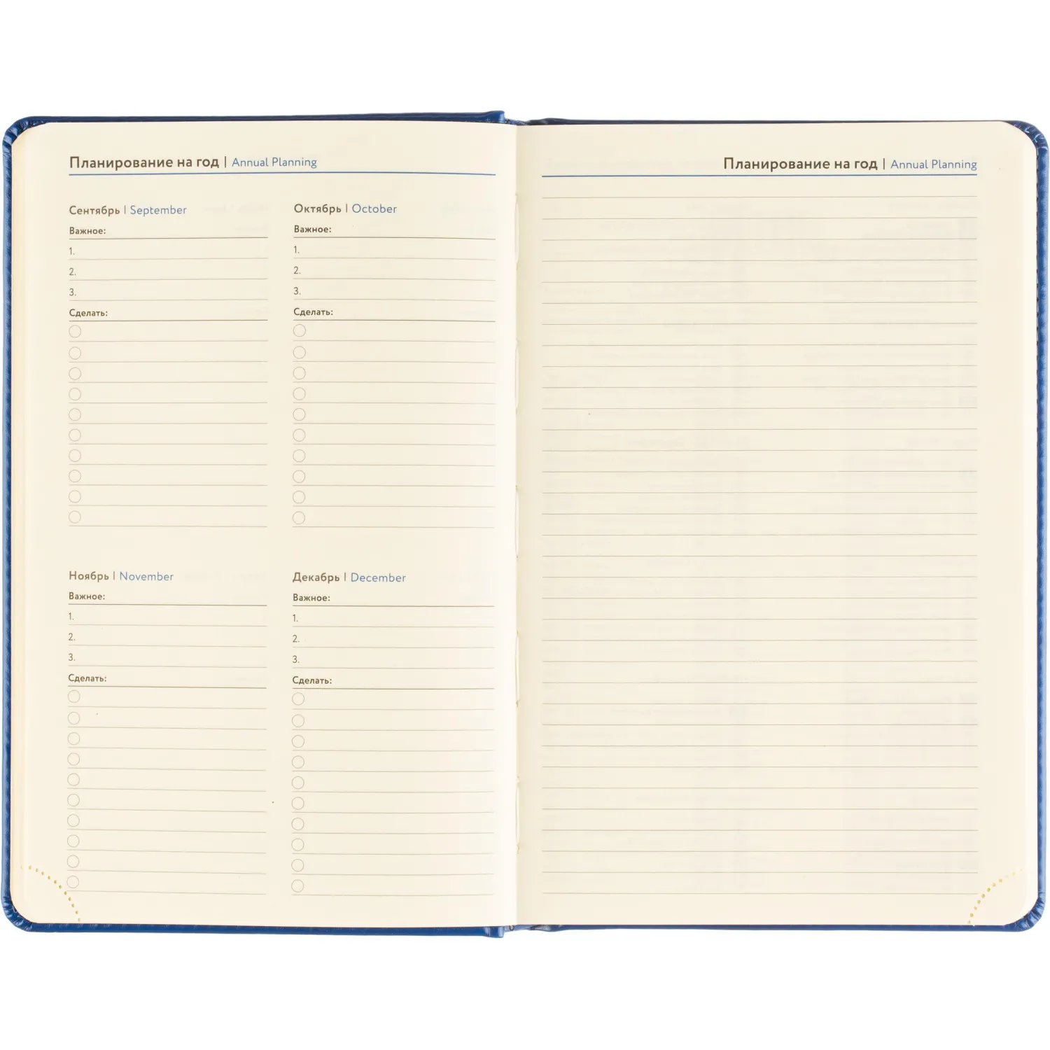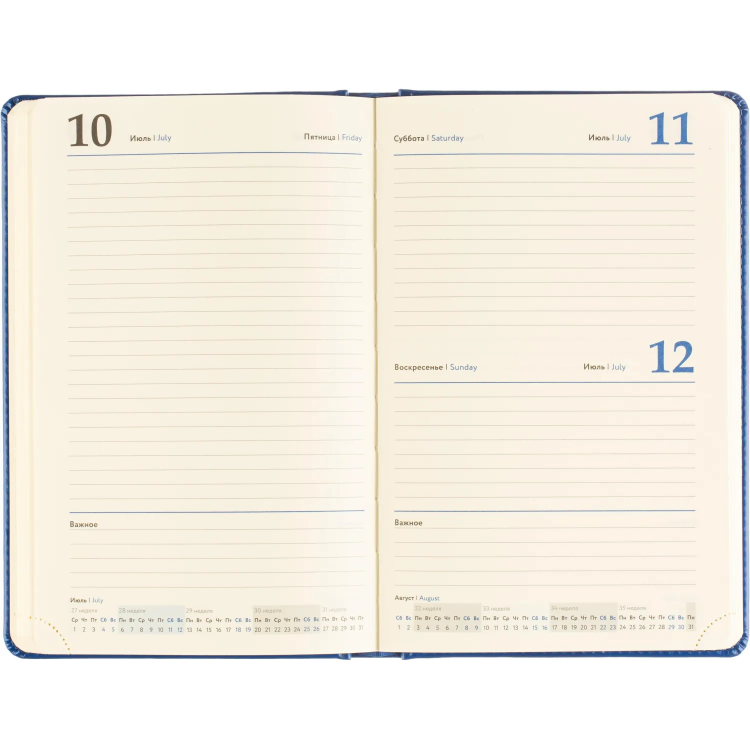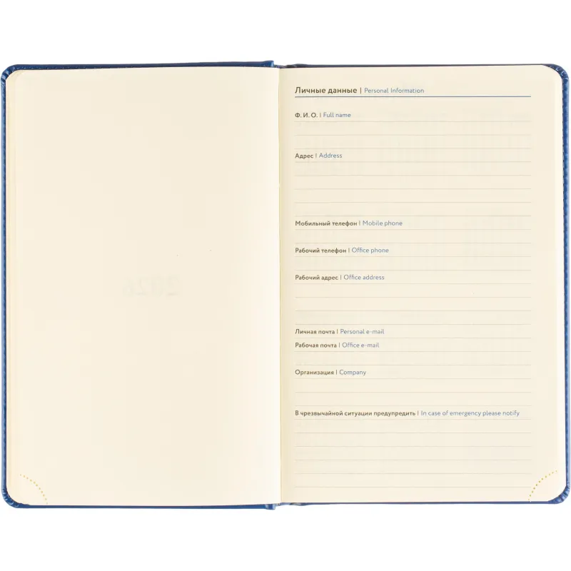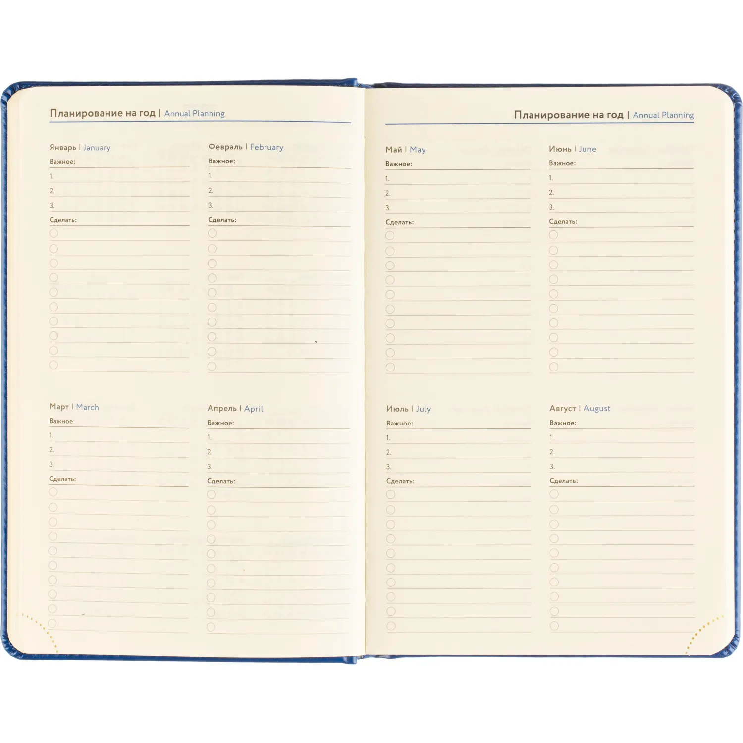 Размер изделия составляет 13.8×21.3 см. Внутри расположен календарь на два года. Ежедневник подходит под персонализацию.