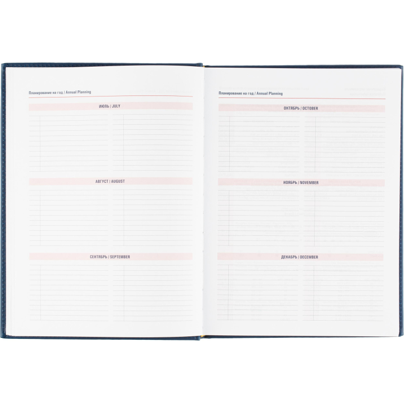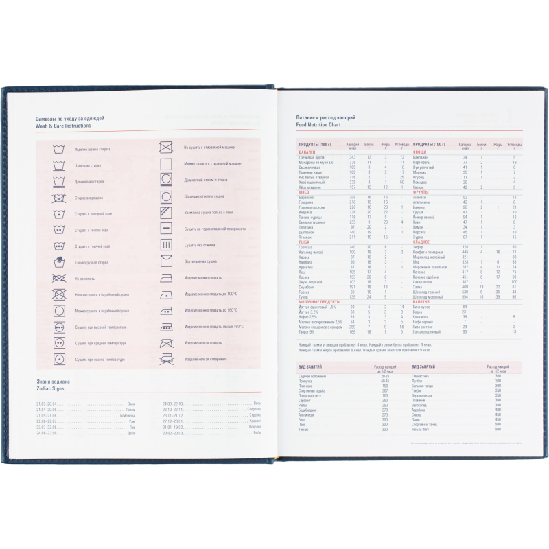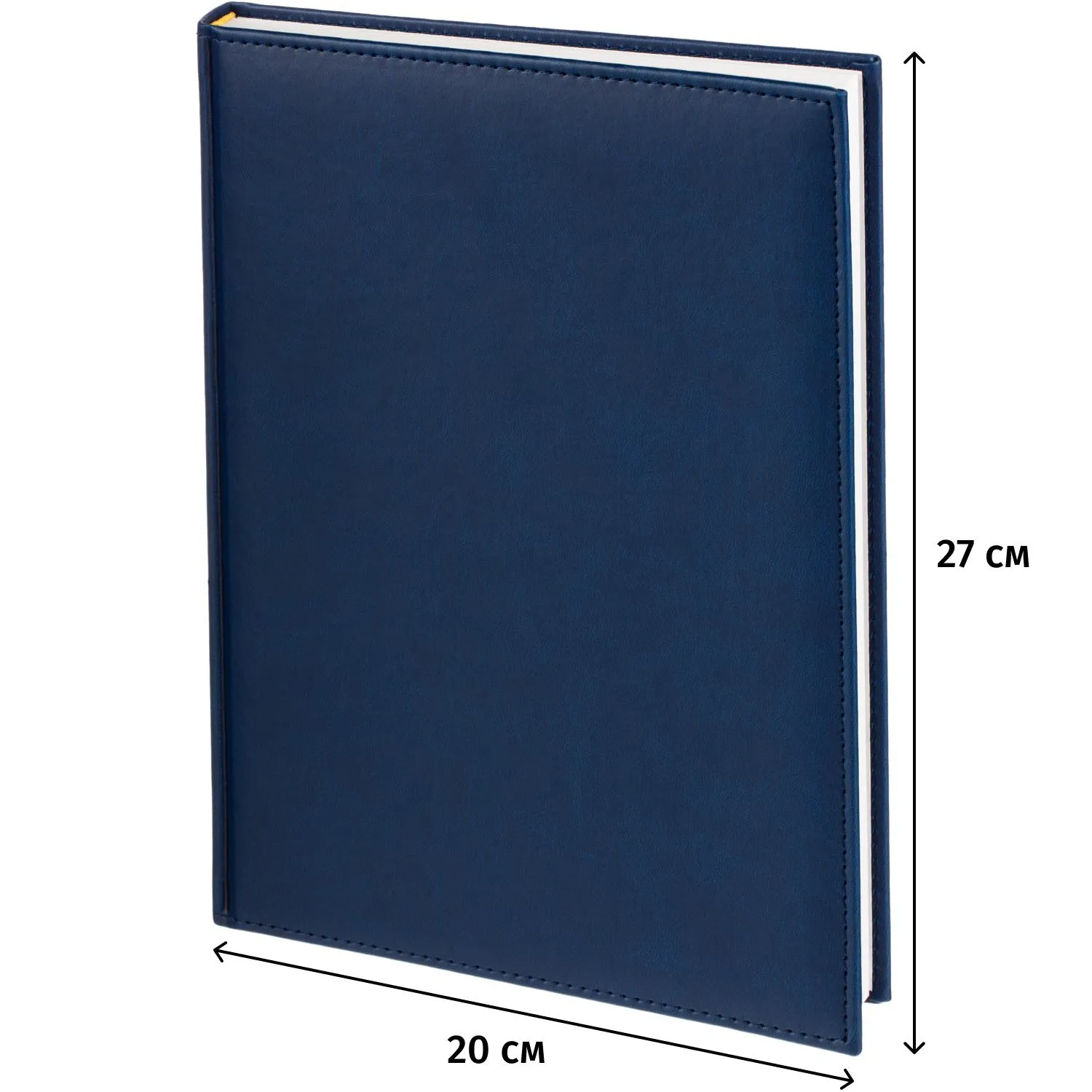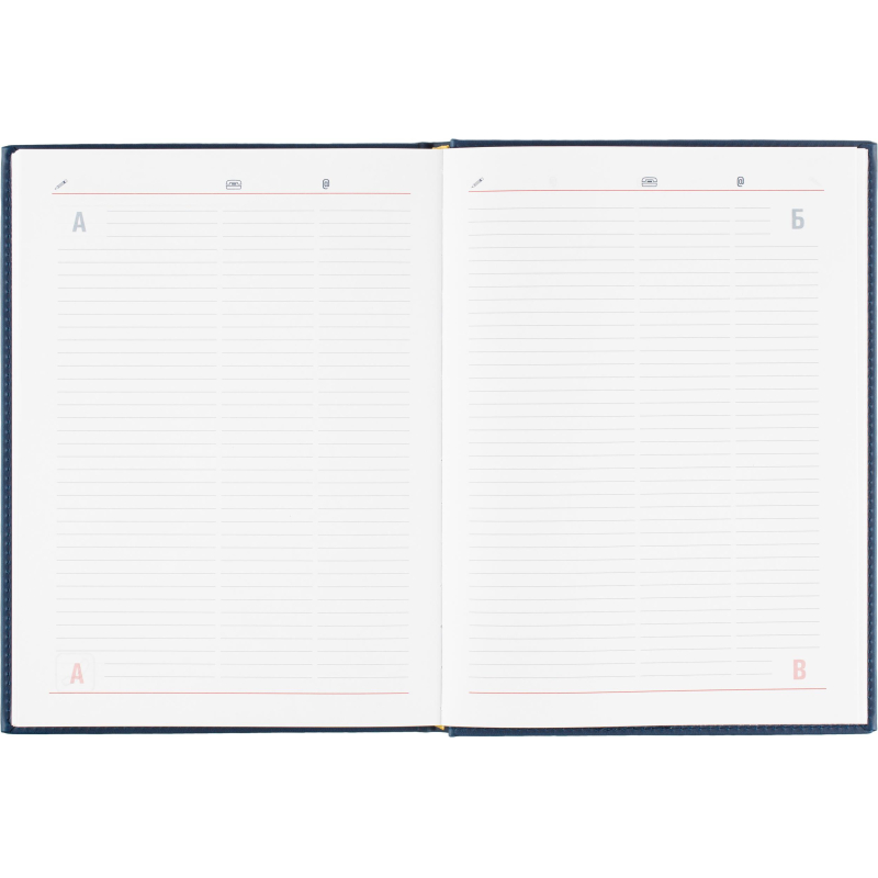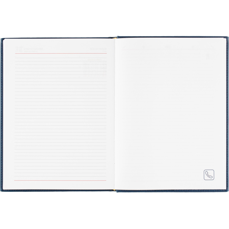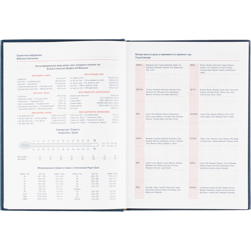 Ежедневник датированный на 2026 год. Формат: 200×270 мм. Цвет: синий. Блок 352 страницы (176 листов) в 2 краски. Бумага офсетная 70 г/кв.м. Блок с перфорацией уголка. Алфавитный блок без вырубки. Дополнительный блок со справочной информацией включает: календарь на 2026-2029 года, планирование на год, справочная информация, карта часовых поясов, лучшие места отдыха в зависимости от времени года, международные размеры одежды и обуви, символы по уходу за одеждой, знаки зодиака, питание и расход калорий. Закладка-ляссе. Твердая обложка с прошивкой по периметру выполнена из искусственной кожи высокого качества. Возможно нанесение логотипа на обложку, любым способом тиснения (блинт или фольга).