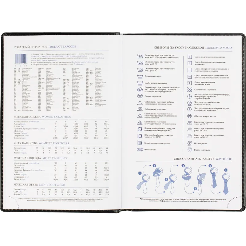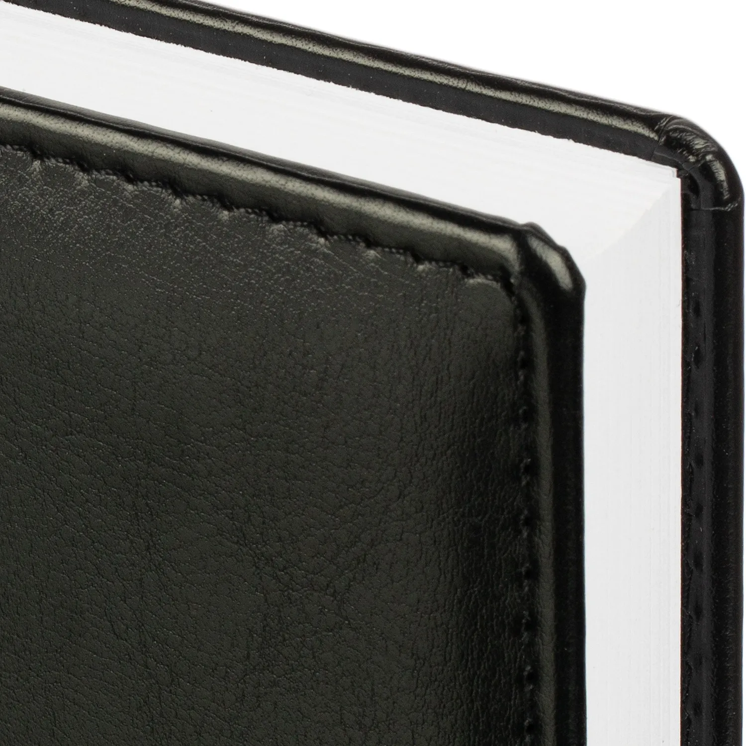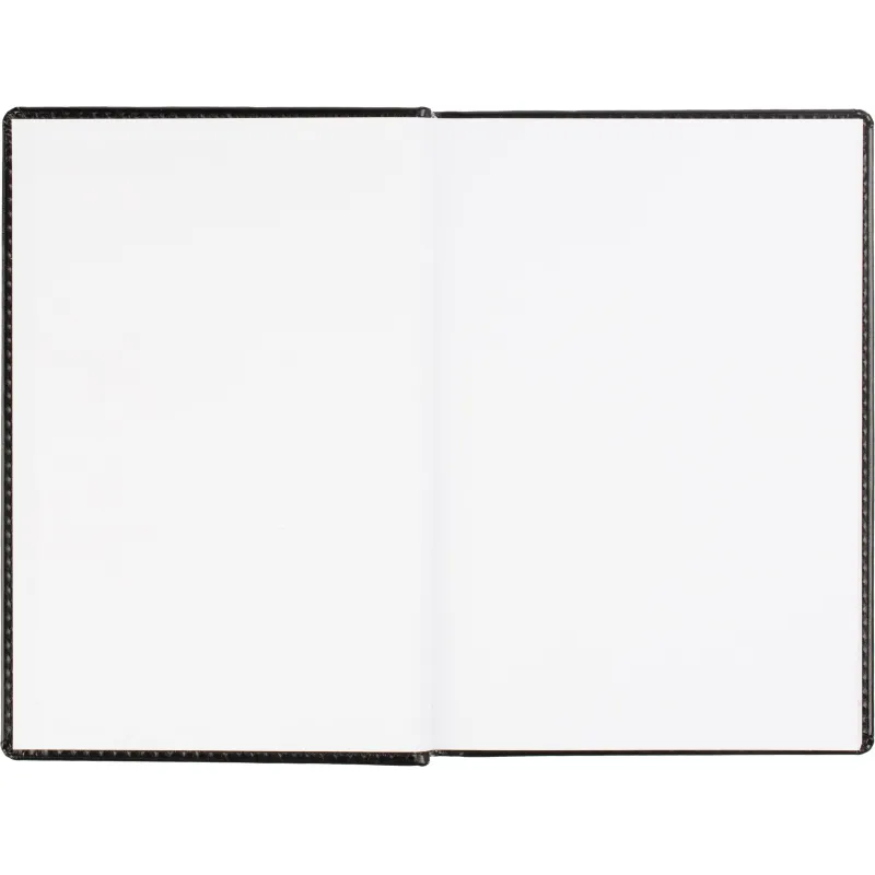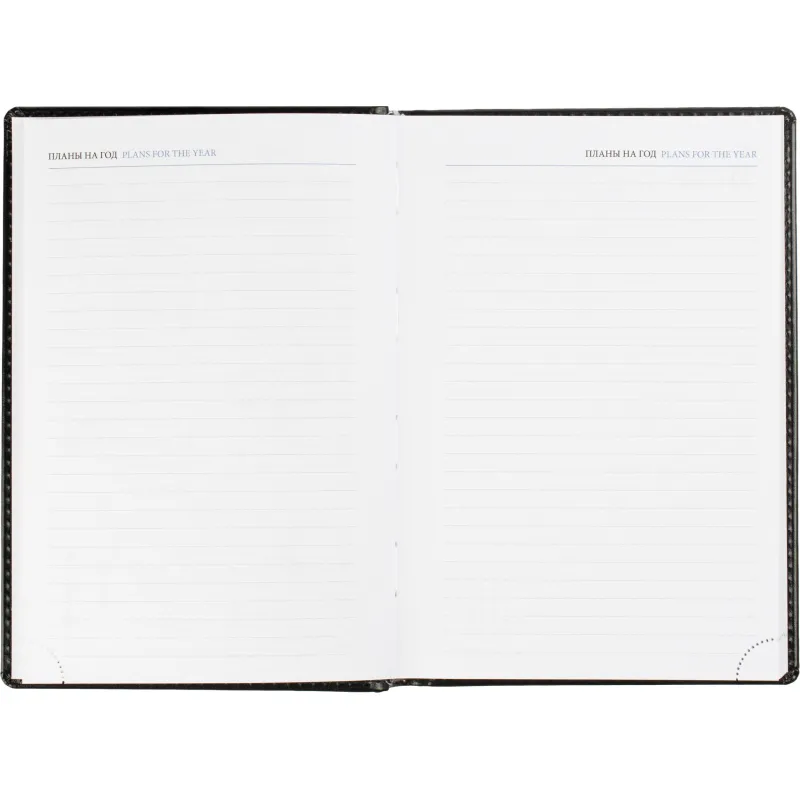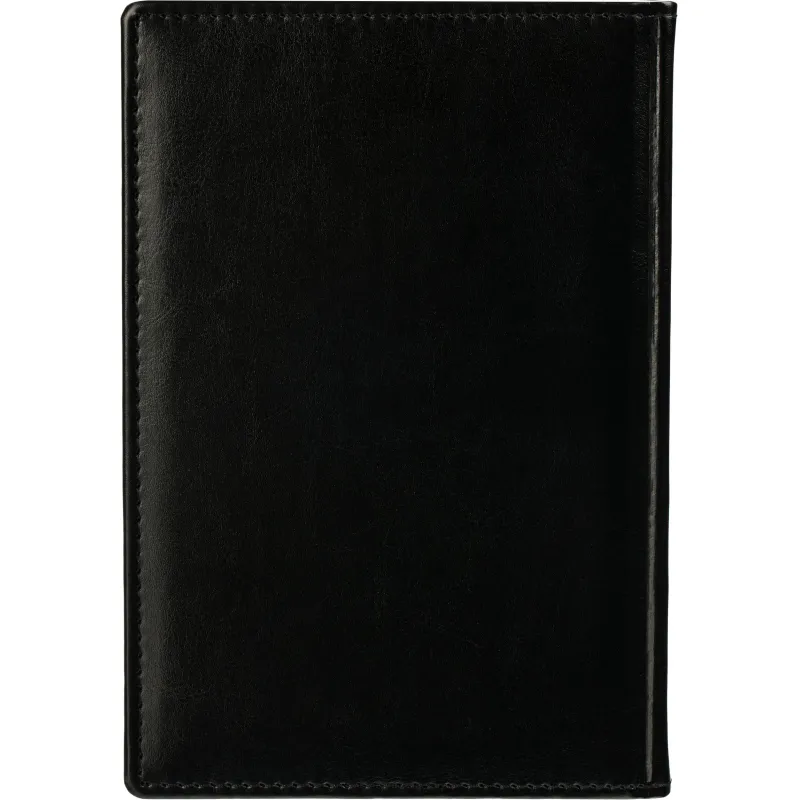 Данный ежедневник имеет формат A5, содержит 176 листов. Твёрдая обложка с поролоном, выполненная из высококачественной искуственной кожи чёрного цвета, придает изделию элегантный и профессиональный вид. Страницы выполнены из белой офсетной бумаги плотностью 70 г/кв.м. Дизайн обложки: универсальный.