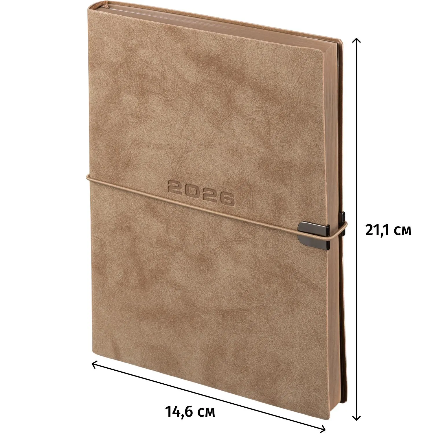 Ежедневник датированный 2026 год Escalada искусственная кожа А5 176 листов бежевый с фиксирующей резинкой (бежевый обрез), 70276