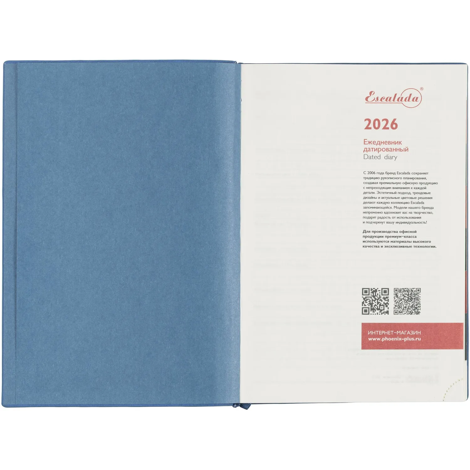 О товаре «Ежедневник датированный 2026 ESCALADA А5 (146x211мм), 176л, голубой 70271»