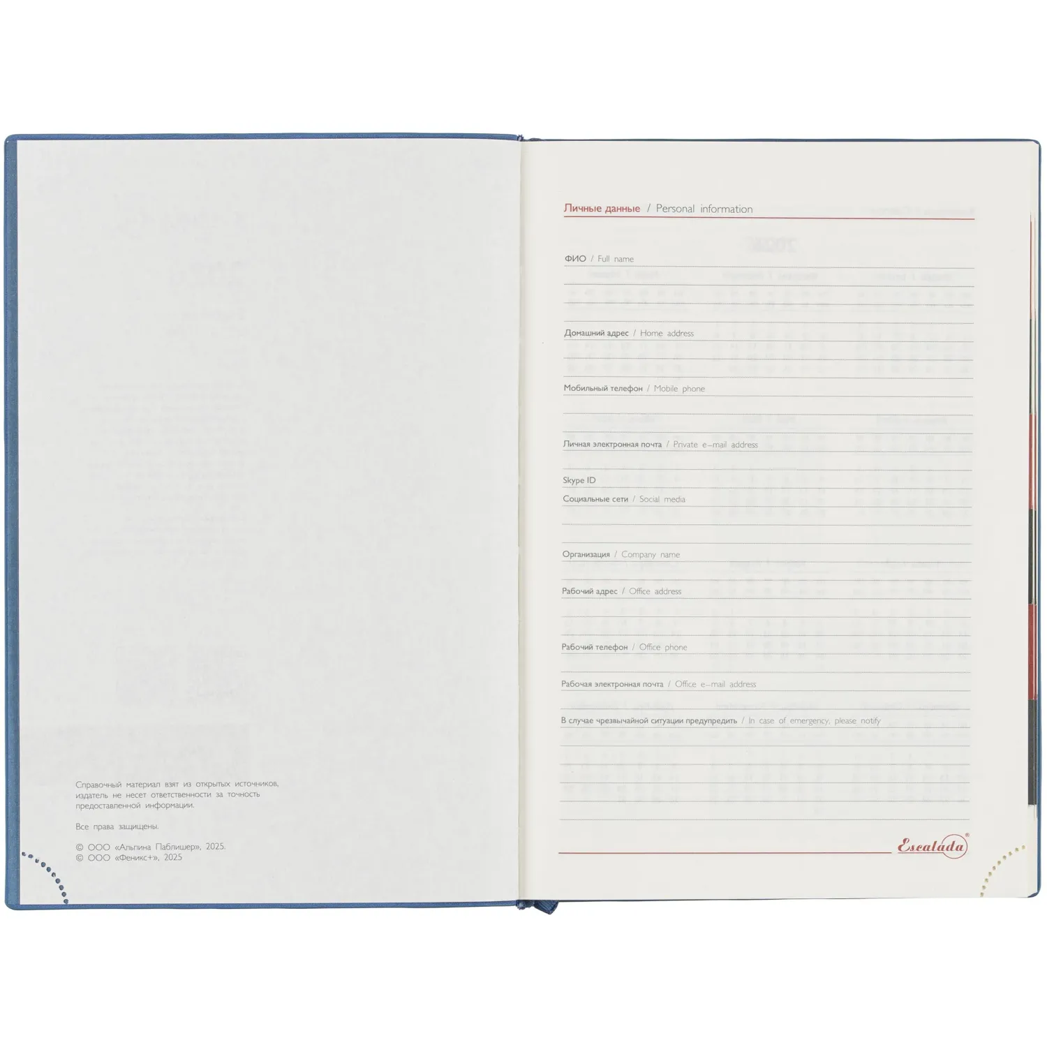 Ежедневник датированный 2026 ESCALADA А5 (146x211мм), 176л, голубой 70271
