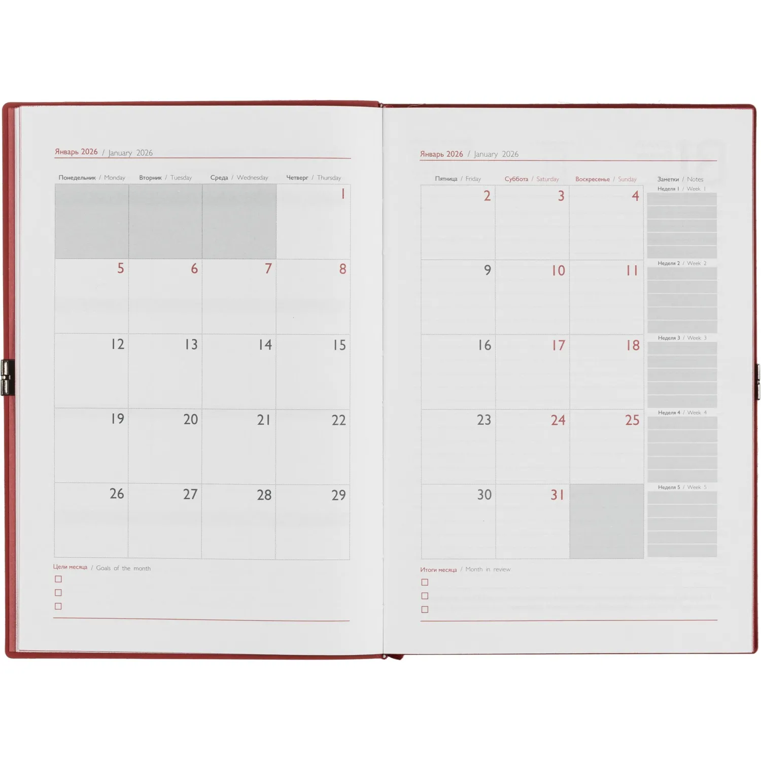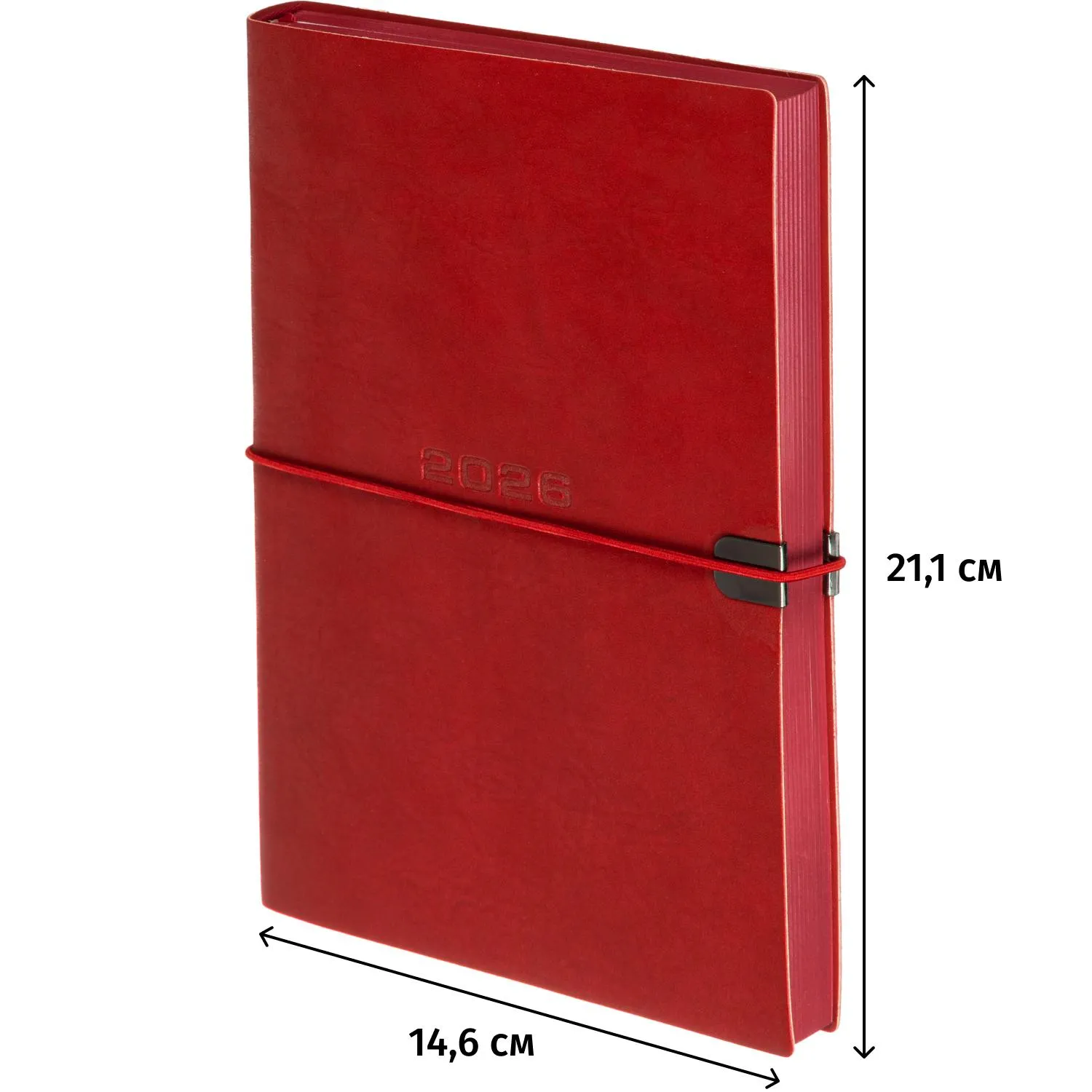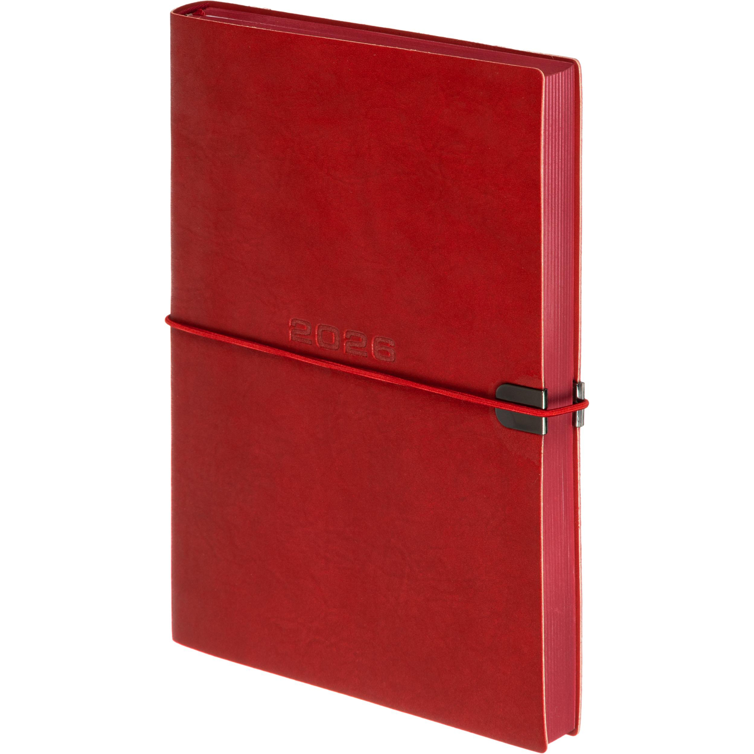 Ежедневник датированный 2026 год Escalada искусственная кожа А5 176 листов красный с фиксирующей резинкой (красный обрез)