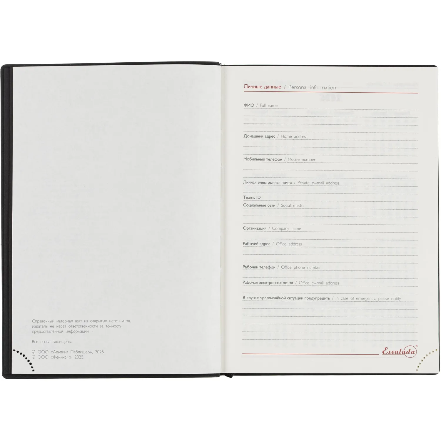 О товаре «Ежедневник датированный 2026 ESCALADA А6+ (126х174мм), 176л, черный 70297»