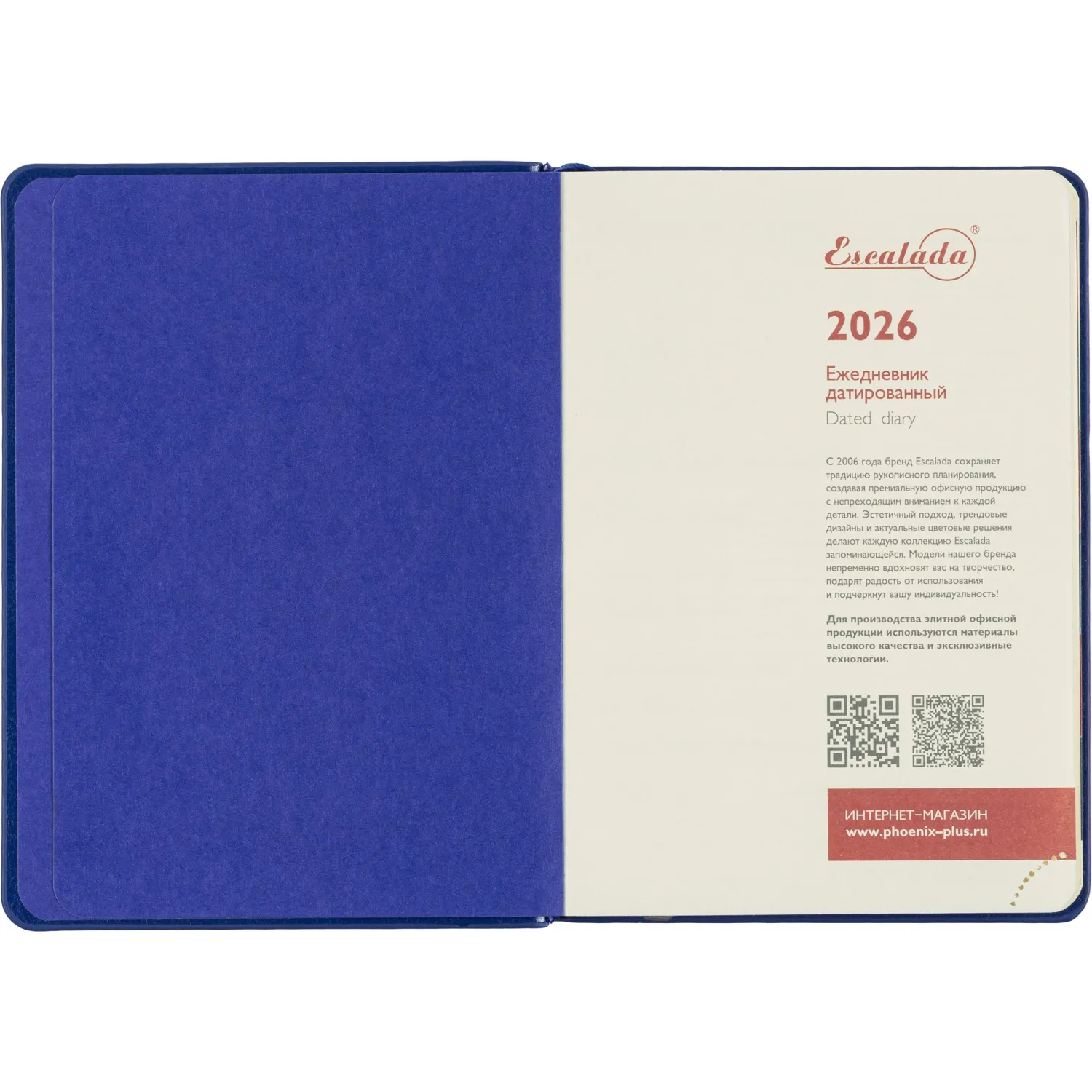 О товаре «Ежедневник датированный 2026 год Escalada искусственная кожа А6+ 176 листов синий, 70292»