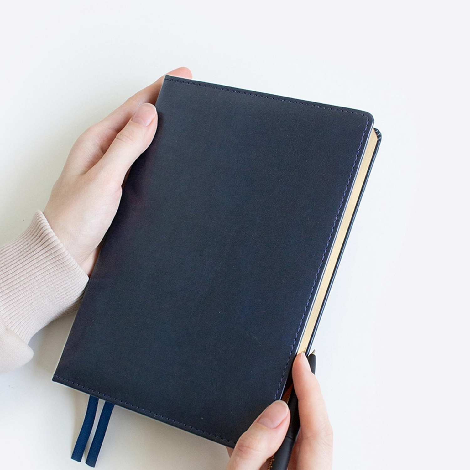 Твёрдая с поролоном обложка из гладкой натуральной рециклированной кожи с прострочкой по периметру имеет удобный кармашек для мелочей на нахзаце и скруглённые уголки, которые не позволят порвать подкладку сумки. Благодаря крепкому ниткошвейному скреплению ежедневник верно прослужит весь год.