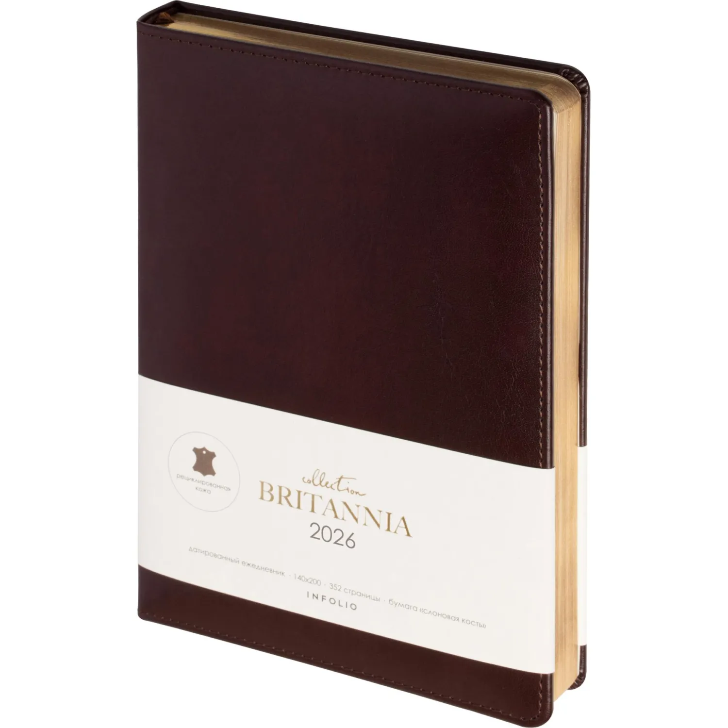 Ежедневник датированный 2026 год InFolio Britannia натуральная кожа А5 176 листов бордовый (золотистый обрез)