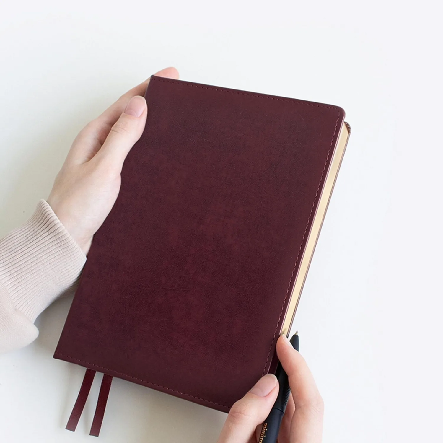 Твёрдая с поролоном обложка из гладкой натуральной рециклированной кожи с прострочкой по периметру имеет удобный кармашек для мелочей на нахзаце и скруглённые уголки, которые не позволят порвать подкладку сумки. Благодаря крепкому ниткошвейному скреплению ежедневник верно прослужит весь год.