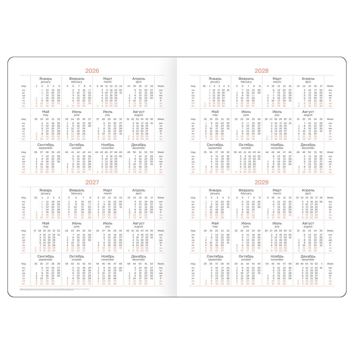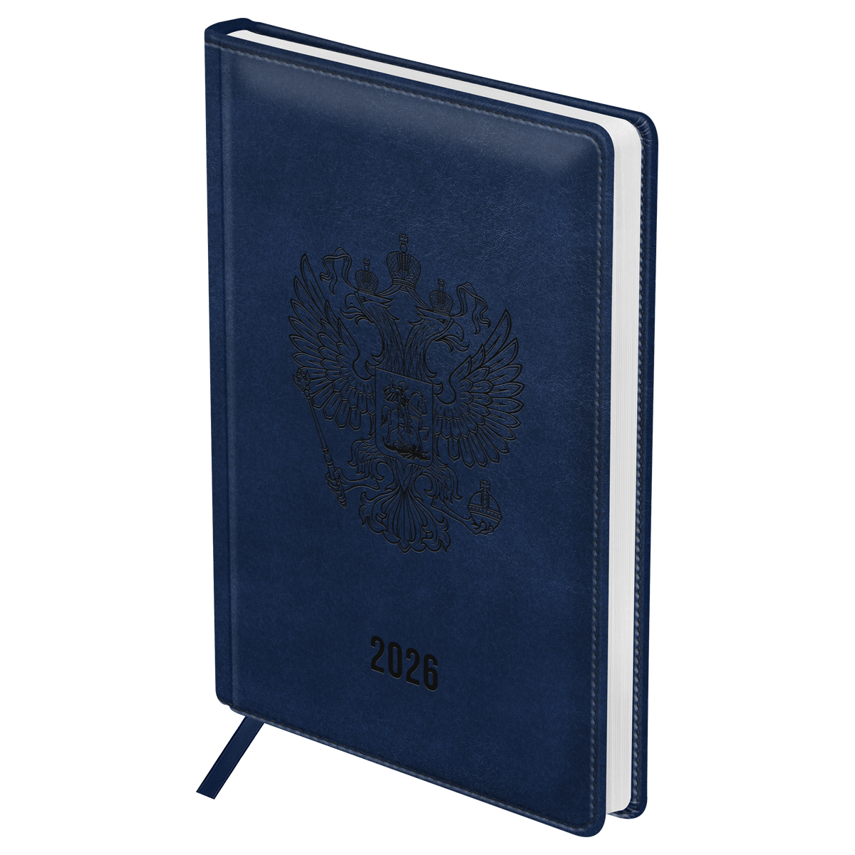 Датированный ежедневник на 2026 год BG серии «Орёл» подходит для деловых людей, которые ценят организованность и эффективность. Изделие формата А4 (205*290 мм) состоит из 176 листов белой бумаги плотностью 70 г/м2, которая подходит для любых типов ручек и не будет просвечиваться. В линованный блок с полем для даты и планингом удобно записывать встречи, идеи и задачи. Обложка из высококачественной экокожи тёмно-синего цвета придает ежедневнику роскошный и изысканный вид, а тиснение герба РФ добавляет ему особую значимость.