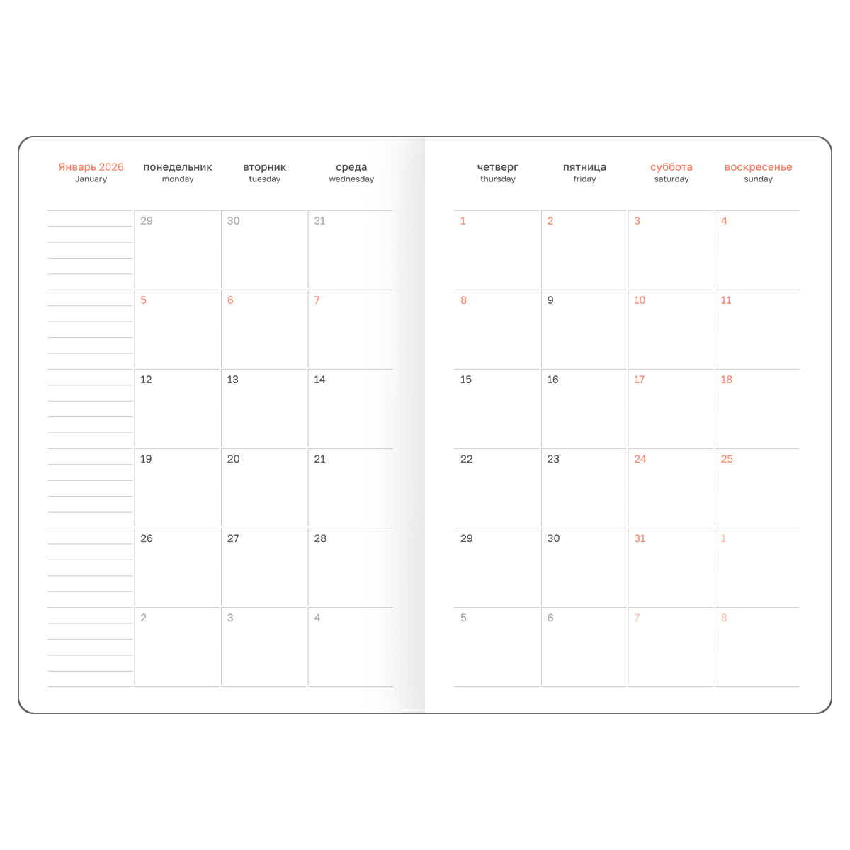Перфорированные уголки и закладка-ляссе обеспечат комфорт и удобство при использовании. В ежедневнике предусмотрена справочная информация, ежемесячный планер, календарь и другие полезные сведения. Подходит под персонализацию. Индивидуальная упаковка в термоусадочную пленку.