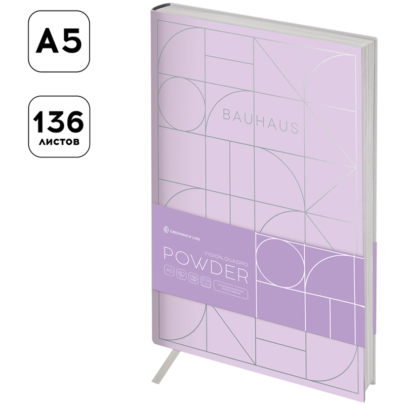 О товаре «Ежедневник недатированный, А5, 136л., кожзам, Greenwich Line "Vision. Quadro. Powder", тон. блок, срез фольга»