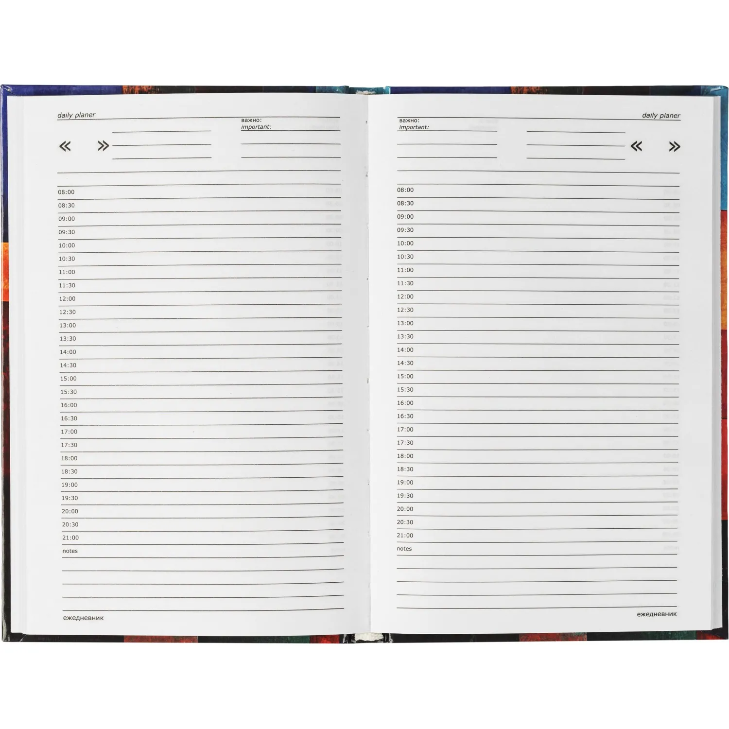 Ежедневник выполнен в твёрдом переплёте с цветной глянцевой обложкой, эмоциональным и ярким дизайном. Благодаря сшитому типу крепления блок надёжно зафиксирован и выдерживает ежедневное использование. Предназначен для ведения записей, планирования встреч и деловых задач. Размер изделия составляет 134×206 мм, блок — 128×200 мм.