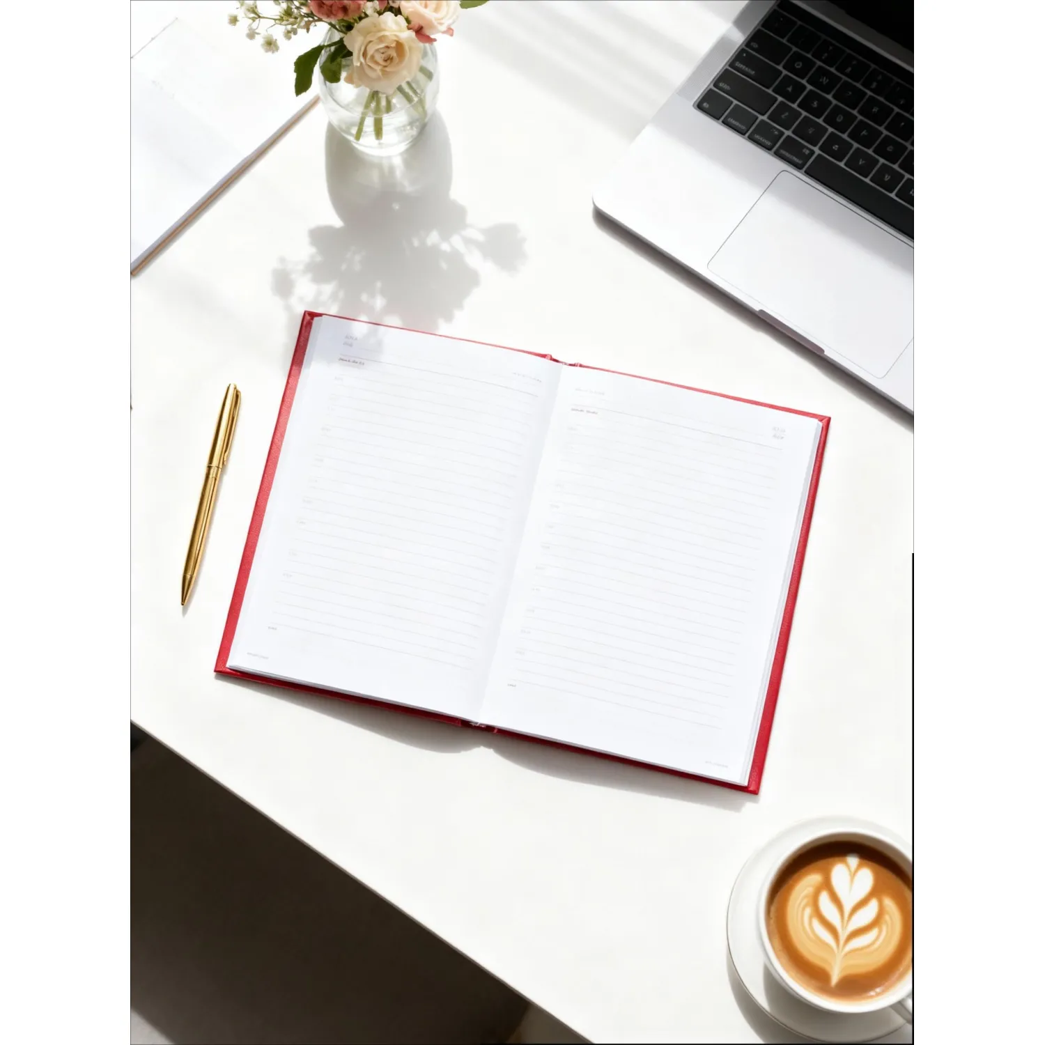 Ежедневник недатированный Attache Ideal New с твёрдой обложкой красного цвета выполнен из балакрона, что придаёт ему стильный и строгий вид, идеально подходящий для деловых людей. Формат А5+ (146×206 мм) делает ежедневник удобным для записи и использования в течение рабочего дня.