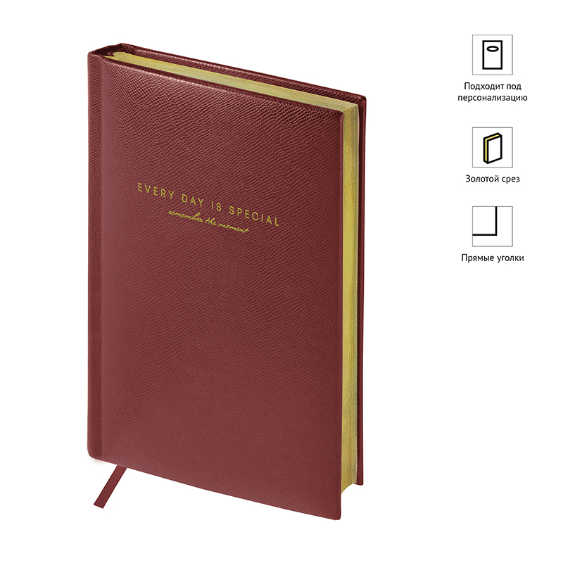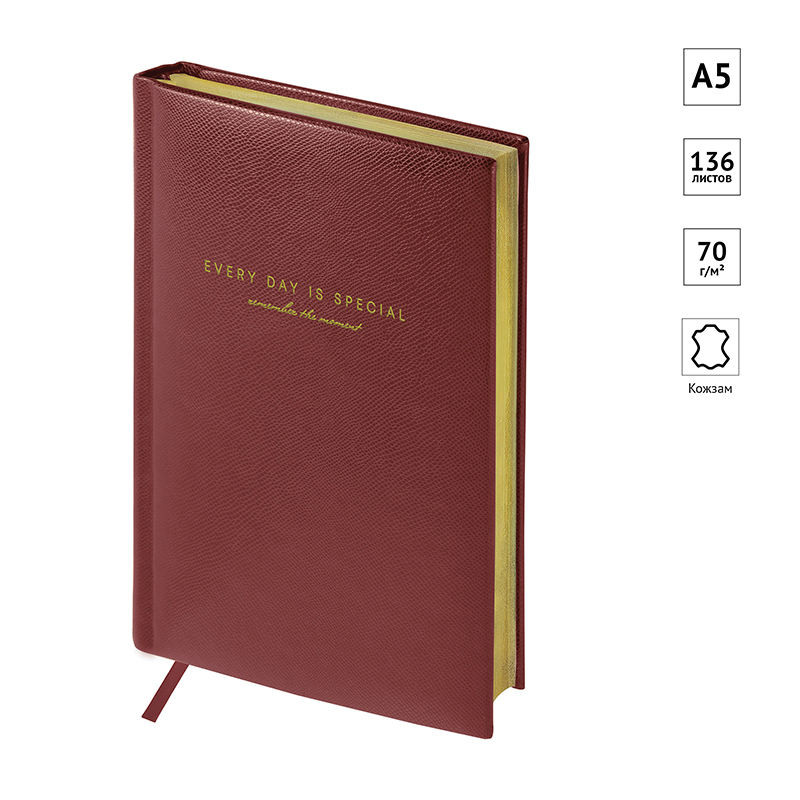 Ежедневник недатированный, А5, 136л., кожзам, OfficeSpace "Dallas", коричневый, золотой срез