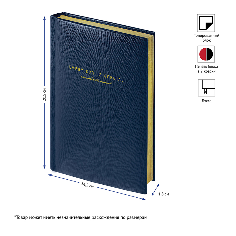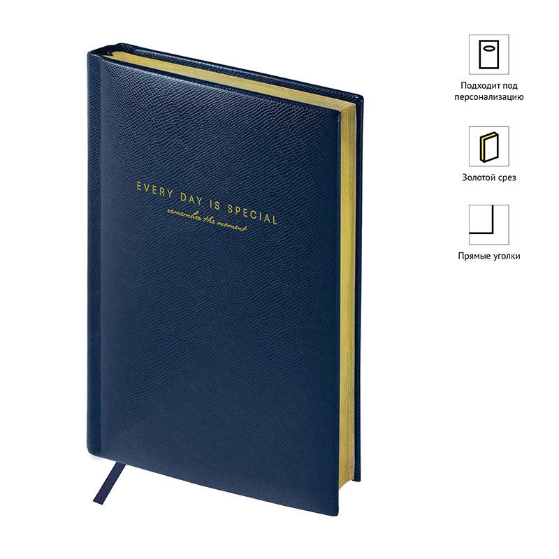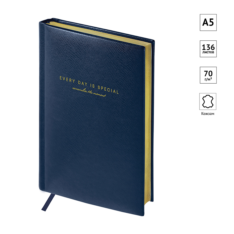 Ежедневник недатированный, А5, 136л., кожзам, OfficeSpace "Dallas", синий, золотой срез