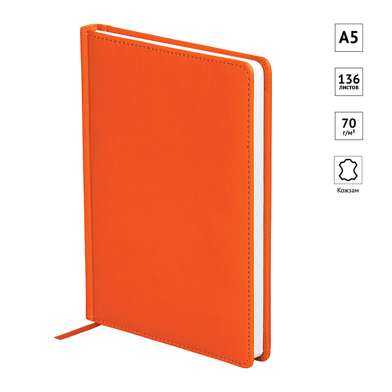 Ежедневник недатированный, А5, 136л., кожзам, OfficeSpace "Winner", оранжевый