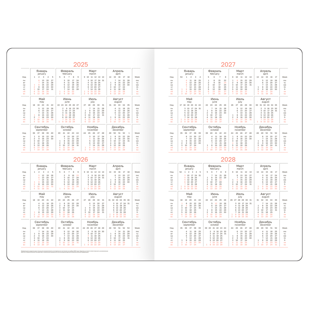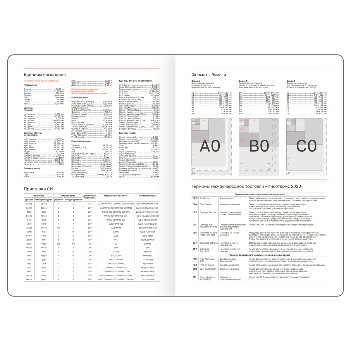 Перфорированные уголки и закладка-ляссе обеспечат комфорт и удобство при использовании. В ежедневнике предусмотрена справочная информация, годовой планер, календарь и другие полезные сведения. Резинка не позволит ежедневнику неожиданно открыться. Подходит под персонализацию. Индивидуальная упаковка в пакет.