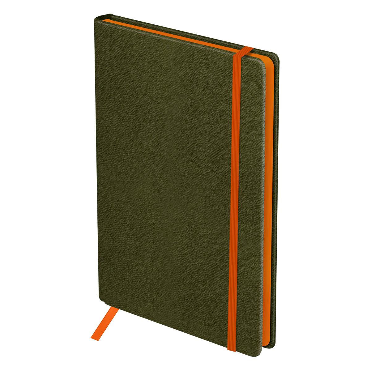 О товаре «Ежедневник недатированный, А5, 136л., твердый переплет, кожзам, BG "Contrast. Khaki", болотный, цветной срез, на резинке»