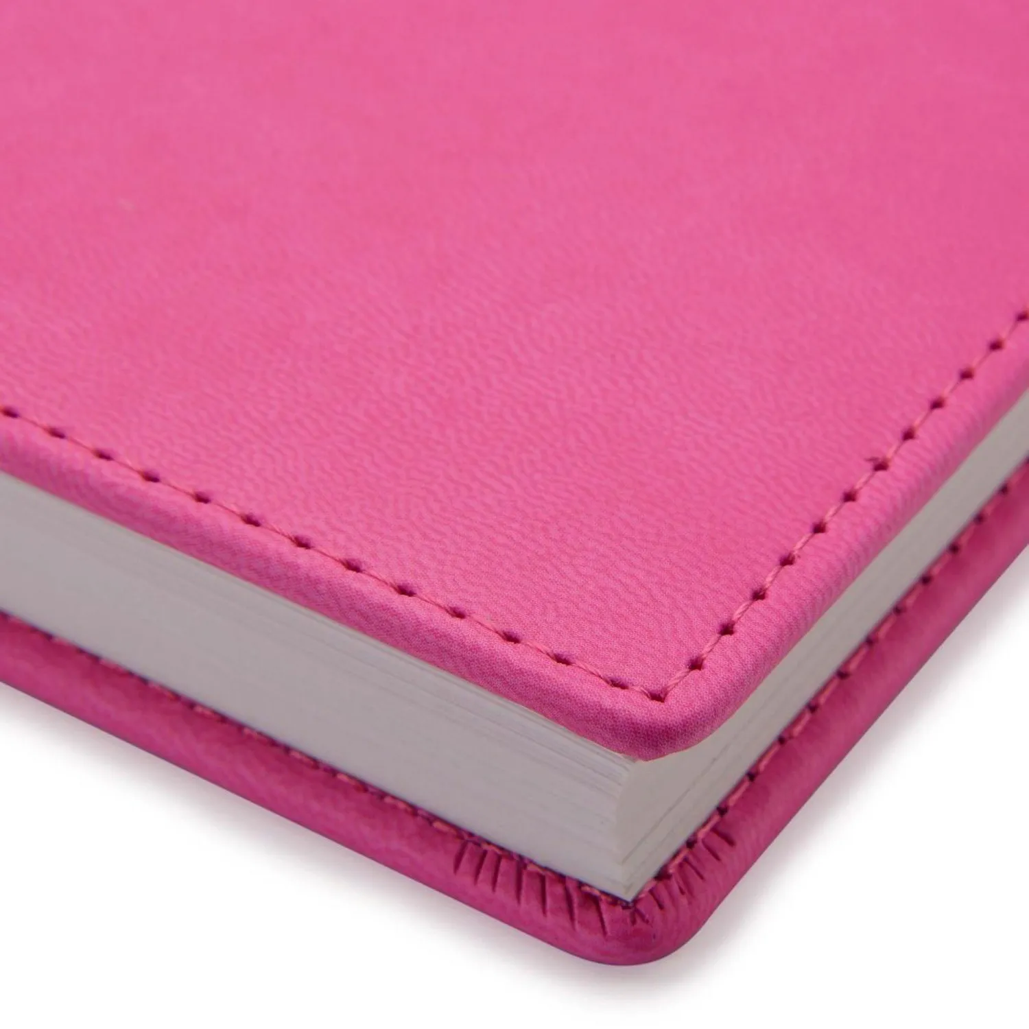Ежедневник с твёрдой обложкой розового цвета, выполненной из кожзаменителя с рельефом, имитирующим натуральную кожу, станет стильным и удобным аксессуаром для работы. Обложка украшена декоративным швом, выполненным в тон с материалом, а скруглённые уголки подчёркивают его привлекательный и элегантный вид.