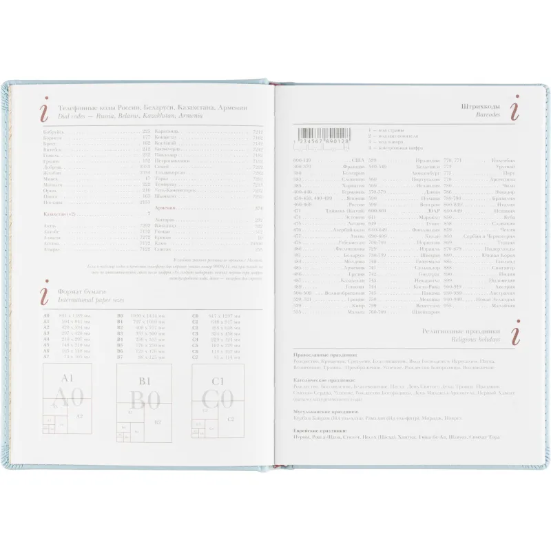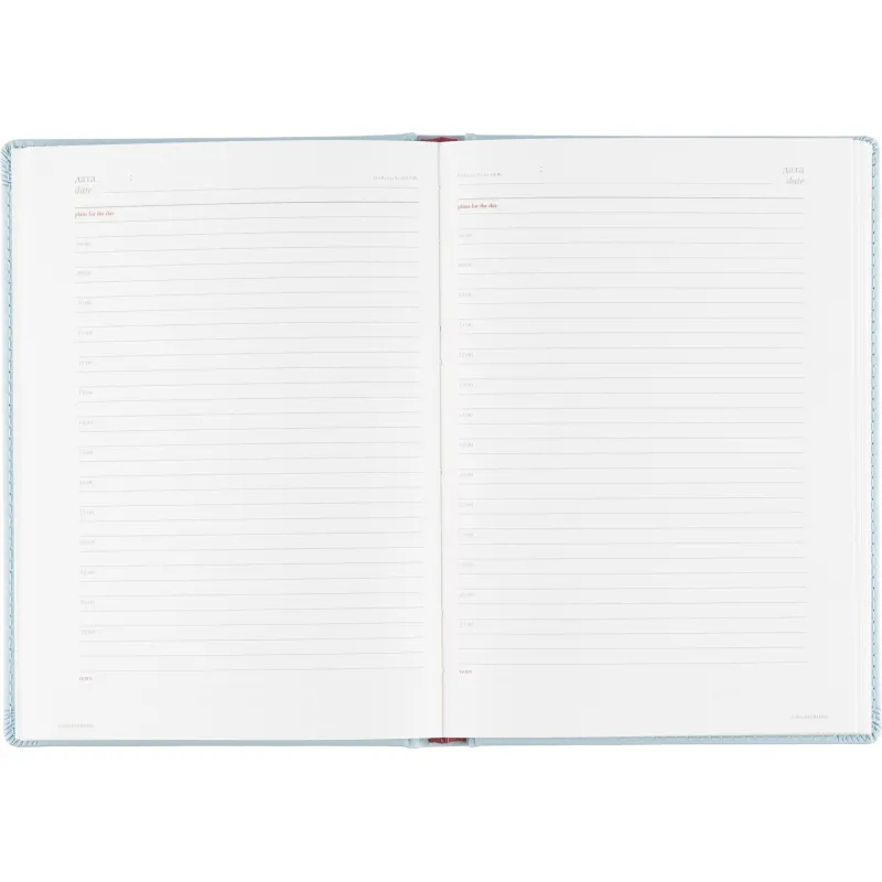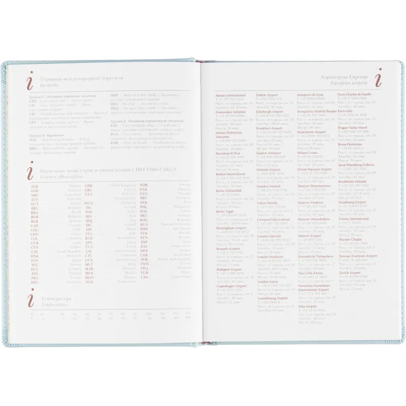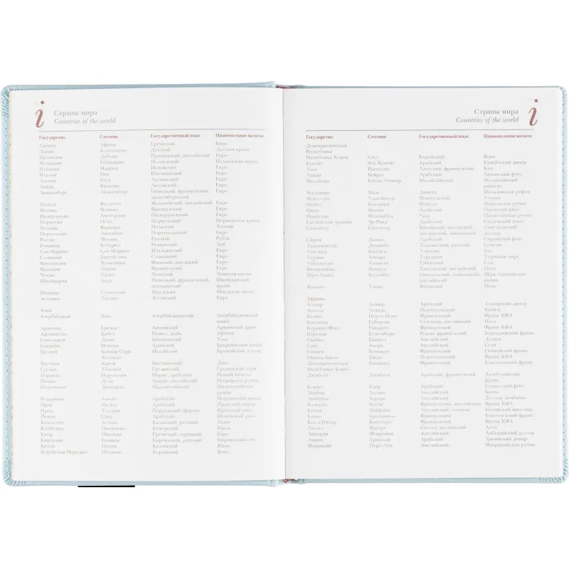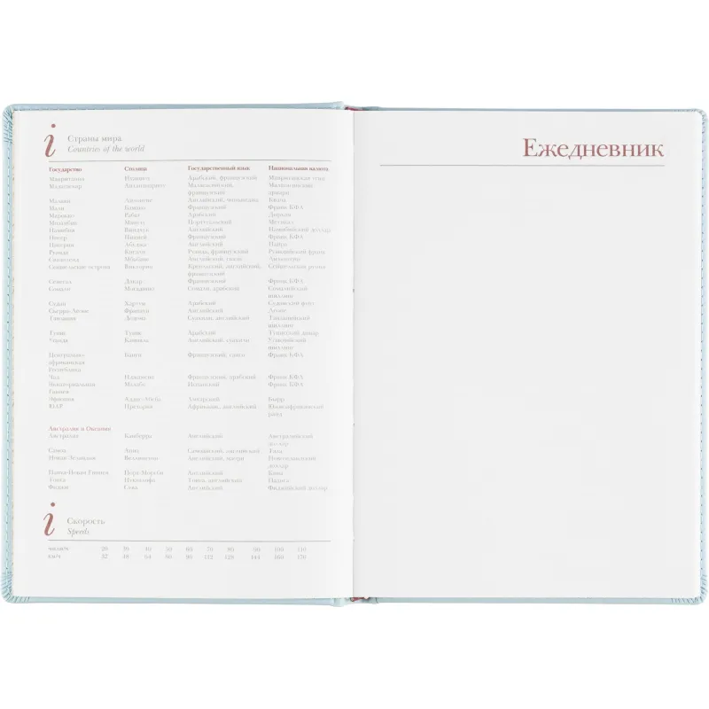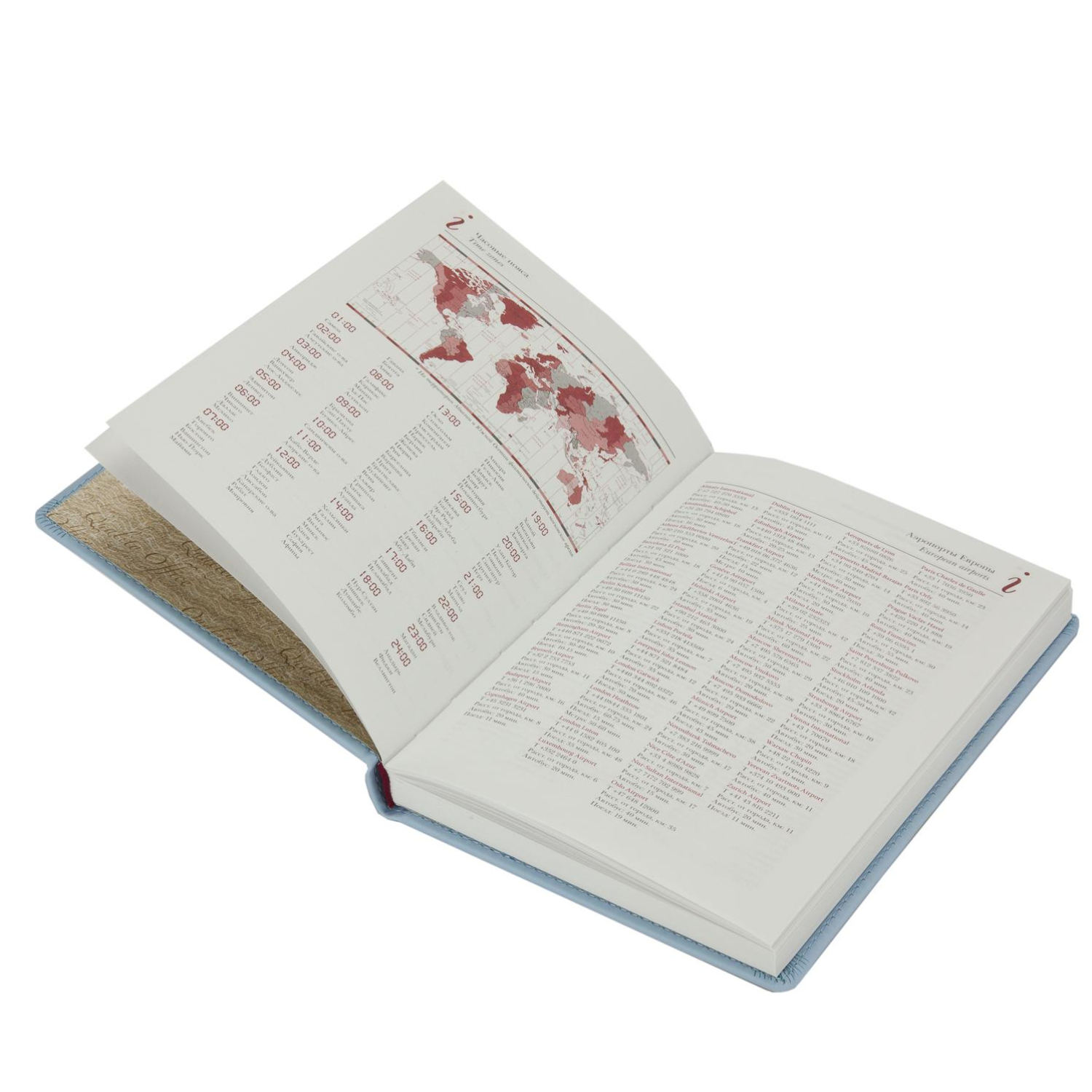 Ежедневник формата A5+ с твёрдой обложкой голубого цвета, выполненной из материала, имитирующего кожу, станет стильным и удобным аксессуаром для ежедневных записей. Внутренний блок состоит из 136 листов (272 страницы) белой офсетной бумаги плотностью 90 г/кв.м. с линейкой. Печать выполнена в два цвета.