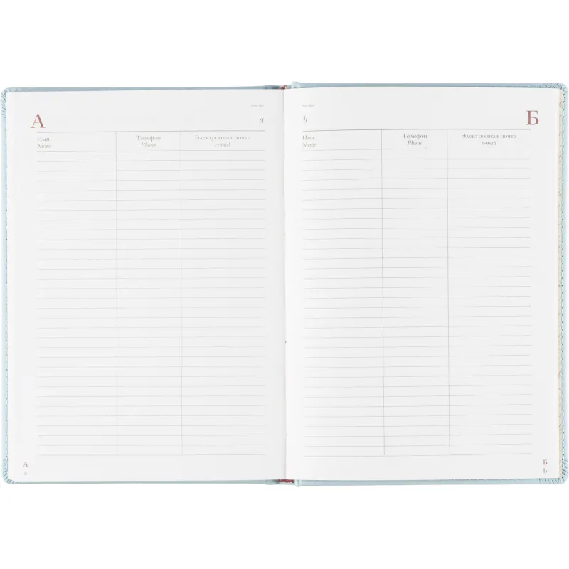 Обложка украшена декоративным швом по периметру, выполненным нитками в тон, и скруглёнными уголками. Включает 14 страниц с полезной справочной информацией и 18 страниц с телефонной книгой, структурированной по алфавиту. Тип крепления — склейка. Ежедневник готов к персонализации, включая нанесение логотипа, что делает его отличным выбором для корпоративных нужд.