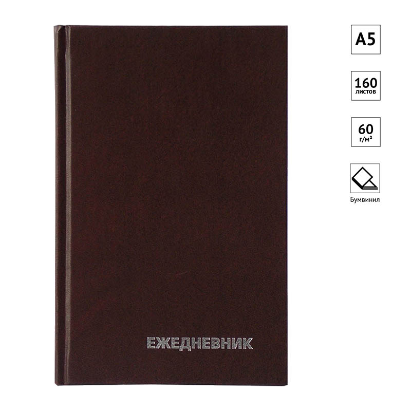 О товаре «Ежедневник недатированный, А5, 160л., бумвинил, OfficeSpace, коричневый»