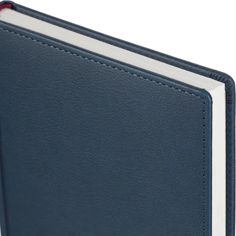Ежедневник серии Leader выполнен с твёрдой обложкой, которая имитирует фактуру натуральной кожи, благодаря использованию итальянского переплётного материала с тонким слоем поролона. Это придаёт обложке объёмность и приятное ощущение на ощупь. Синий цвет обложки и простая однотонная отделка придают ежедневнику элегантность и сдержанную стильность.