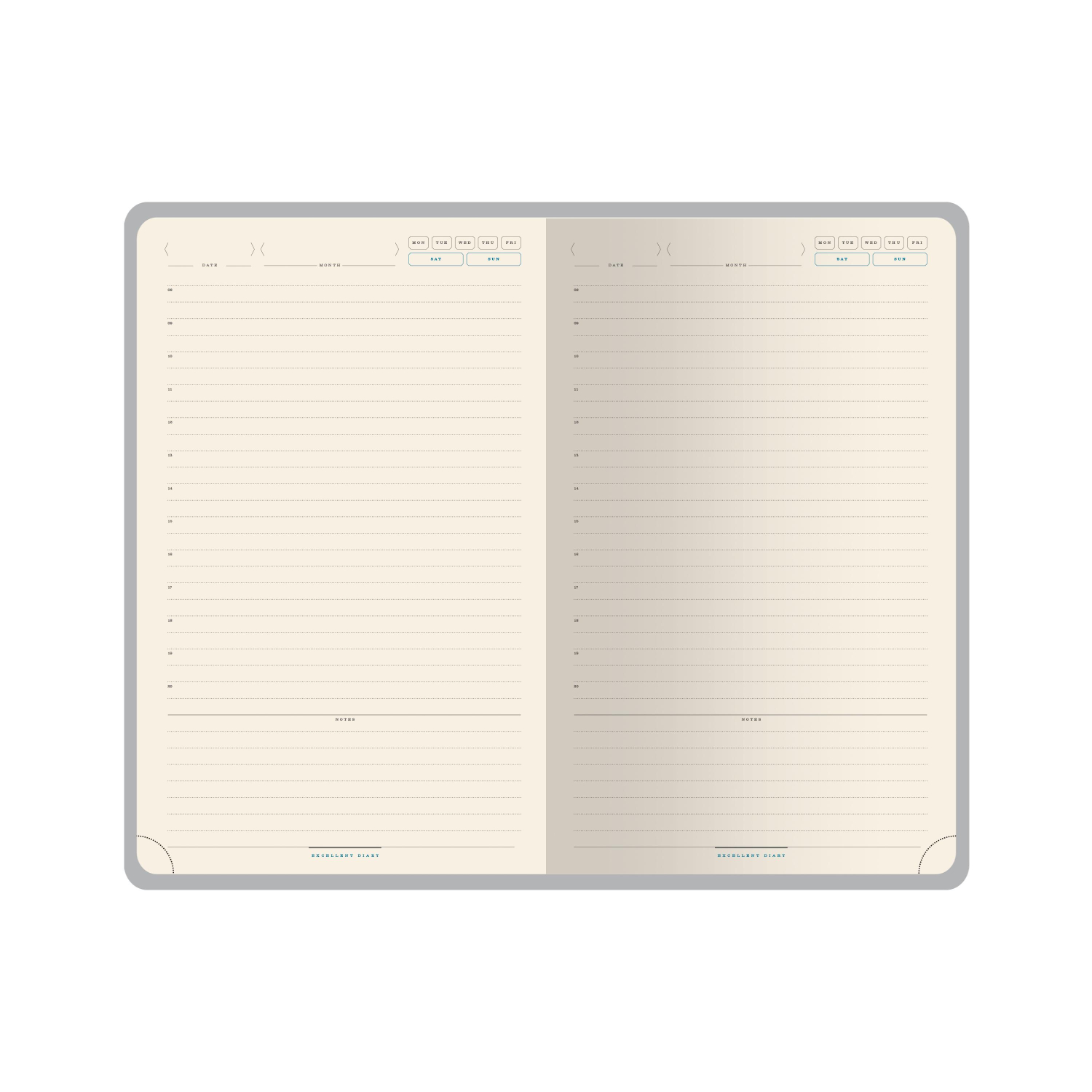 Внутренний блок из бежевой офсетной бумаги плотностью 70 г/кв.м содержит 272 страницы, из которых 19 страниц занимают справочная информация. Все углы блока перфорированы и скруглены для удобства использования. Линовка в виде линий с интервалом для записи делает ежедневник идеальным для планирования. Этот ежедневник подходит для персонализации.