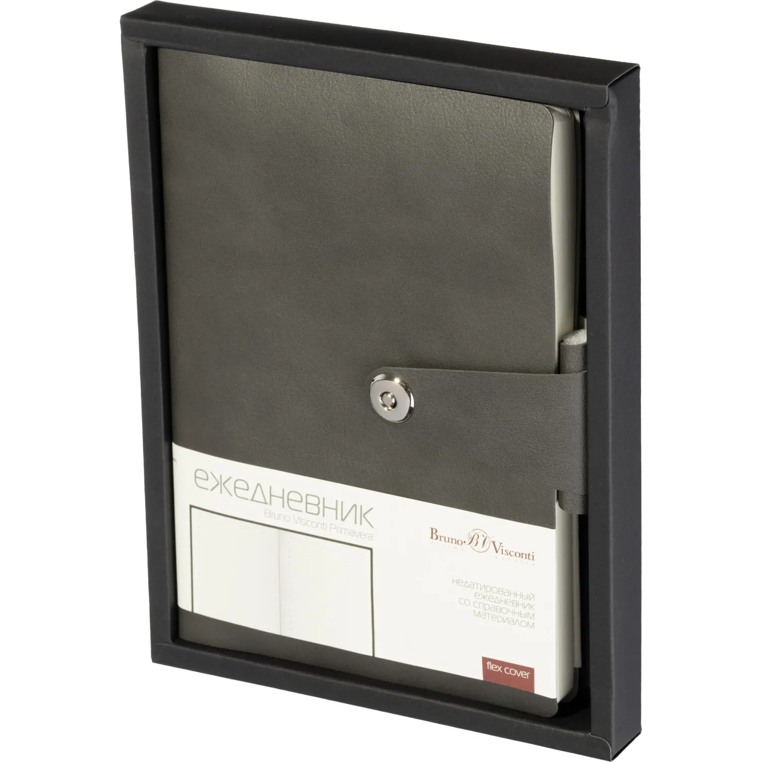 Ежедневник недатированный Bruno Visconti Primavera формата A5 с 136 листами, серого цвета. Ежедневник формата A5 из коллекции Primavera выполнен в насыщенном сером цвете и привлекает внимание своей строгостью и элегантностью. Гибкая обложка из искусственной кожи надёжно фиксируется хлястиком с магнитной кнопкой, что придаёт дополнительную защиту. Скруглённые углы обложки и страниц помогают избежать заломов и повреждений.