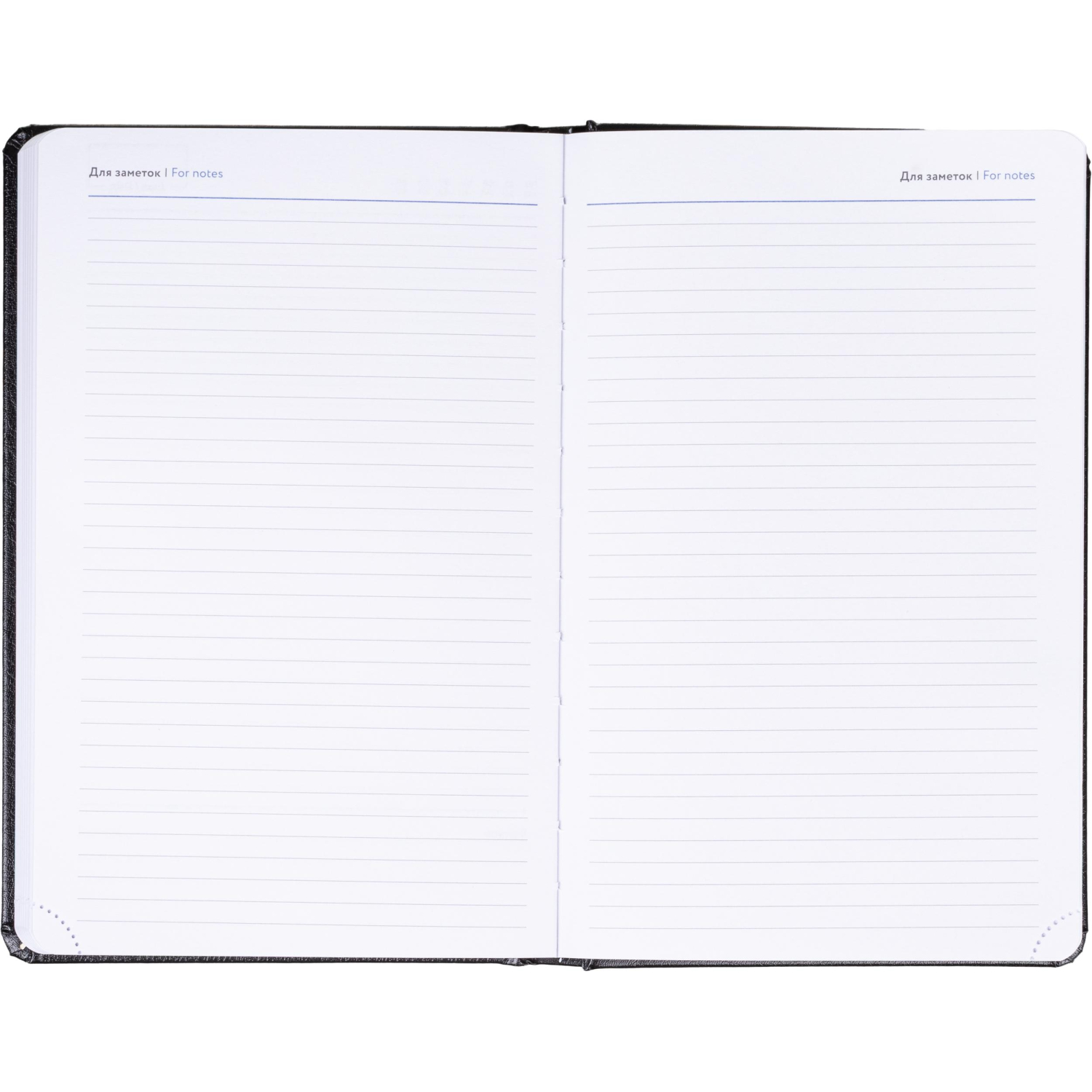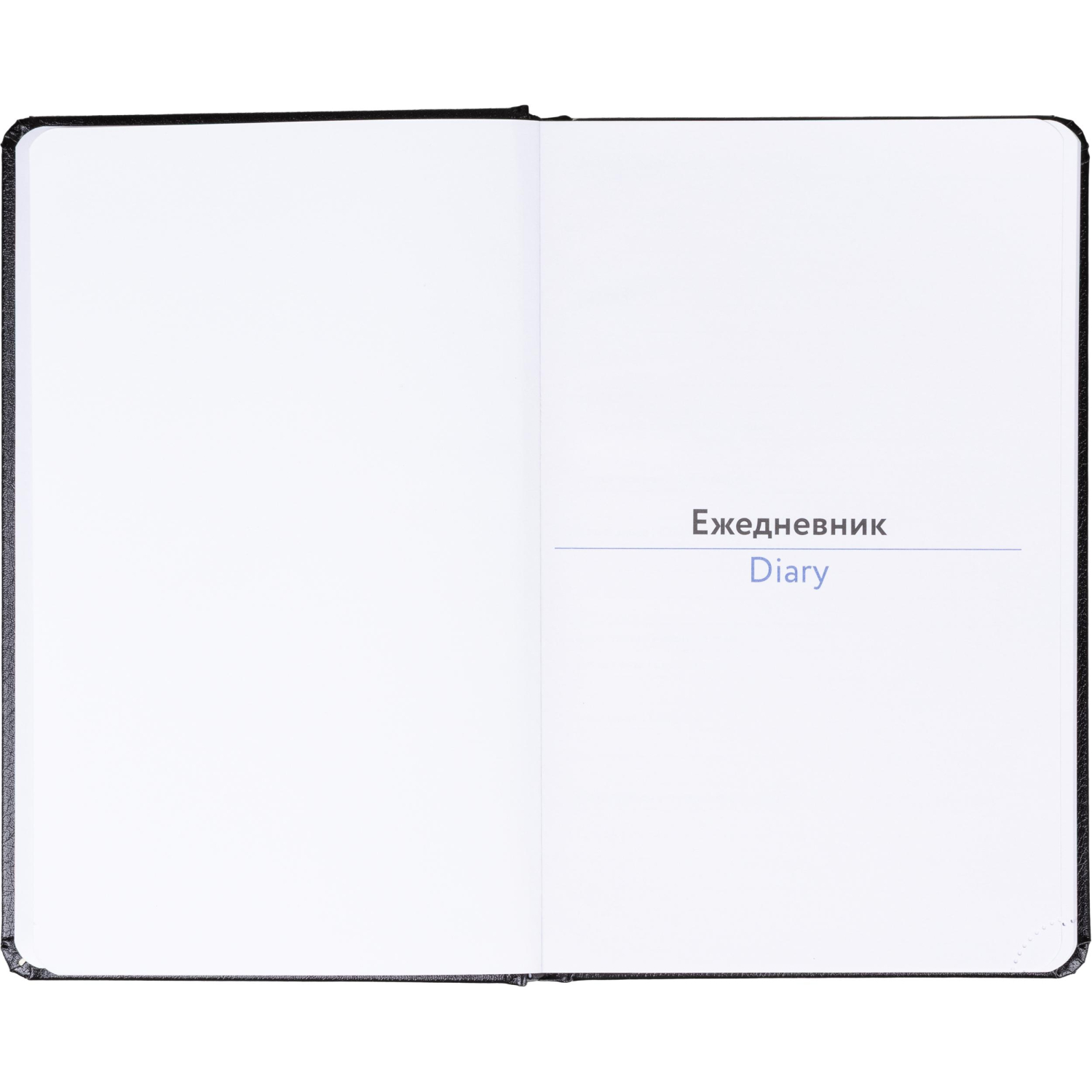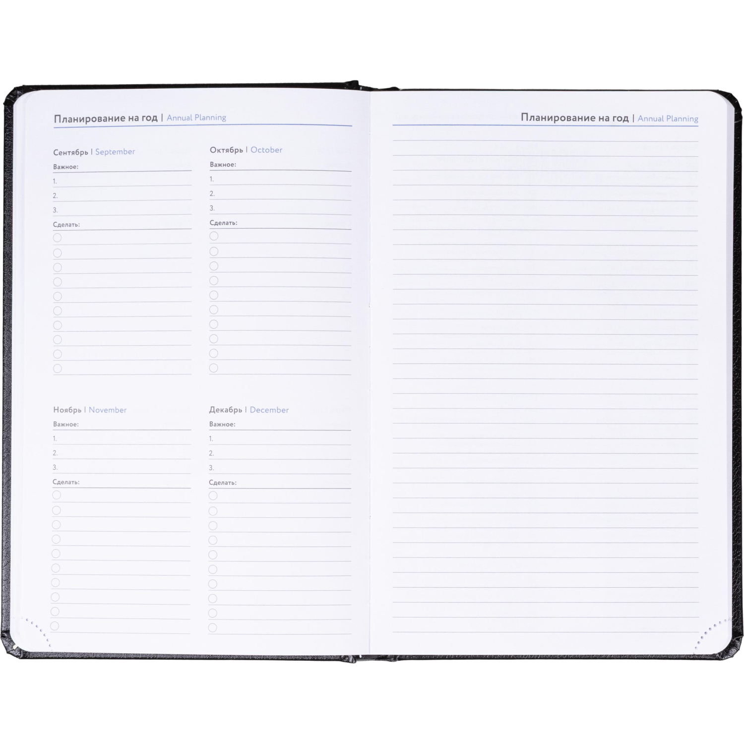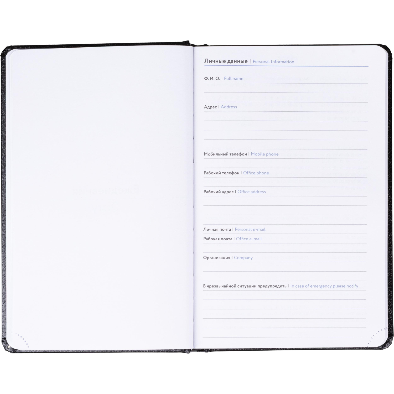 Ежедневник формата A5 предназначен для ведения записей и планирования без привязки к датам. Обложка выполнена из балакрона чёрного цвета с тиснением фольгой и оформлена в лаконичном однотонном стиле. Твёрдый переплёт сохраняет форму изделия, а сшивка блока обеспечивает надёжность при повседневном использовании.