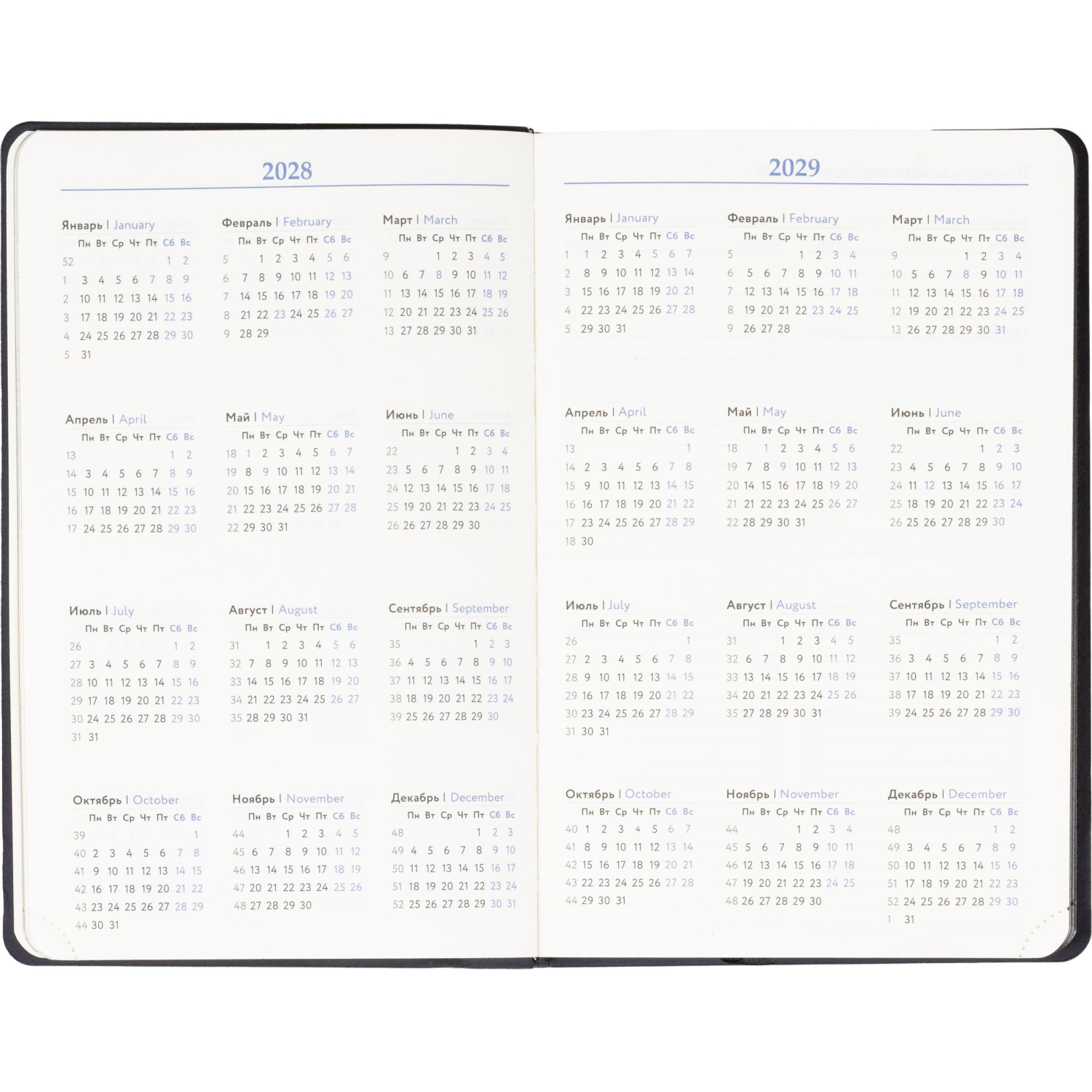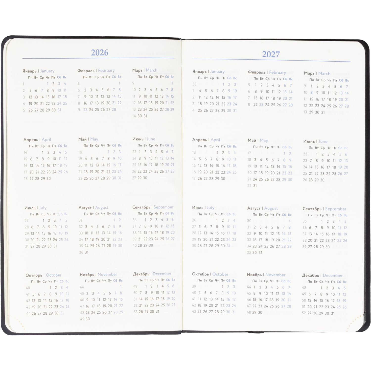 Размер ежедневника составляет 13.8×21.3 см. Внутри размещён календарь на два года. Модель подходит под персонализацию.