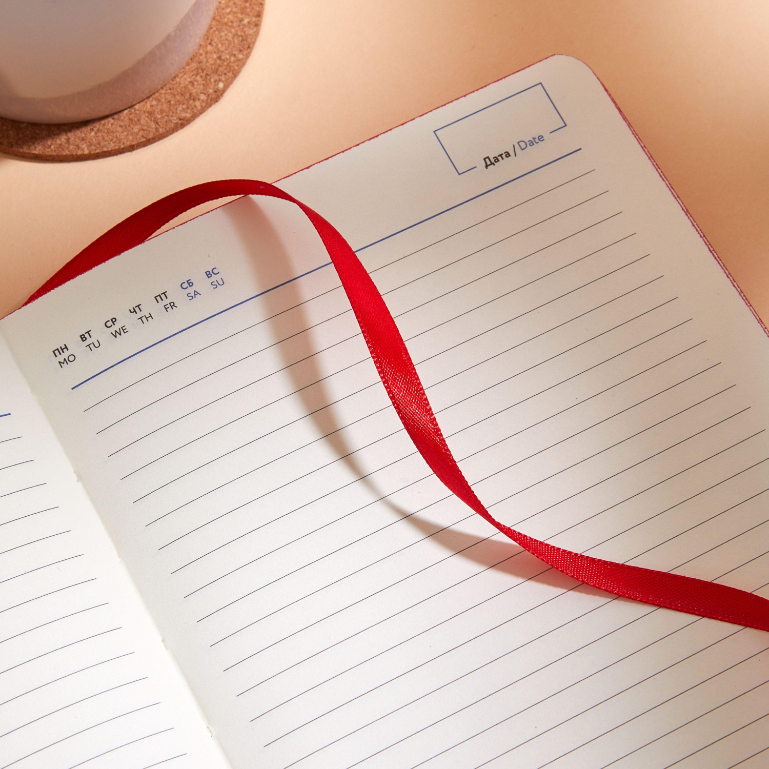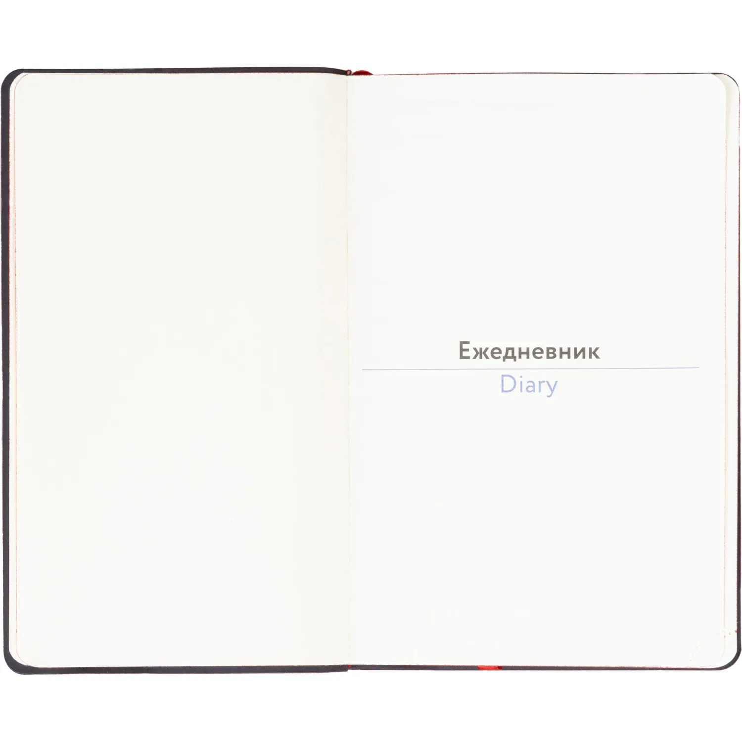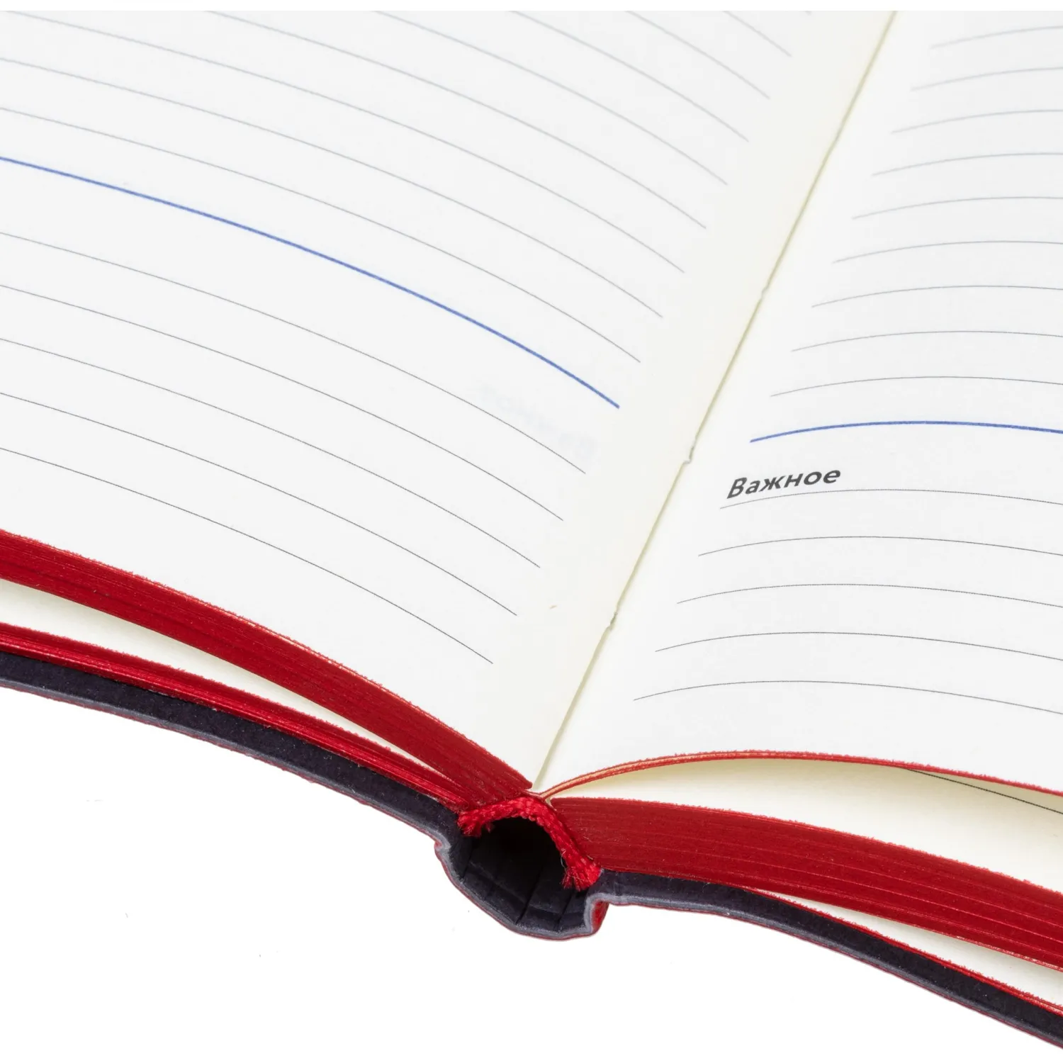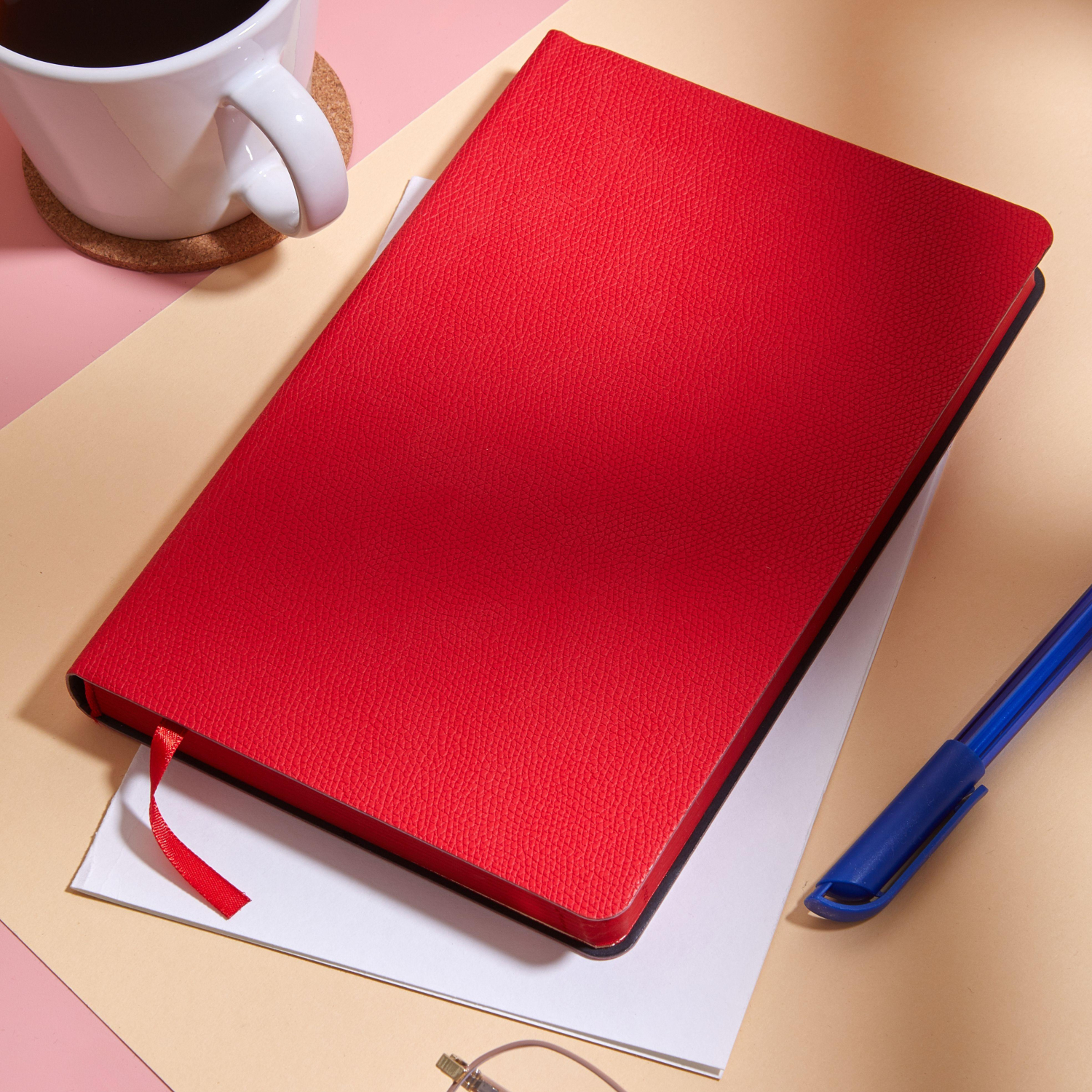 Ежедневник формата A5 предназначен для ведения записей без привязки к датам. Обложка выполнена из искусственной кожи красного цвета с тиснением и оформлена в однотонном стиле. Мягкий переплёт делает изделие гибким и лёгким, а сшивка внутреннего блока обеспечивает его прочность при регулярном использовании.