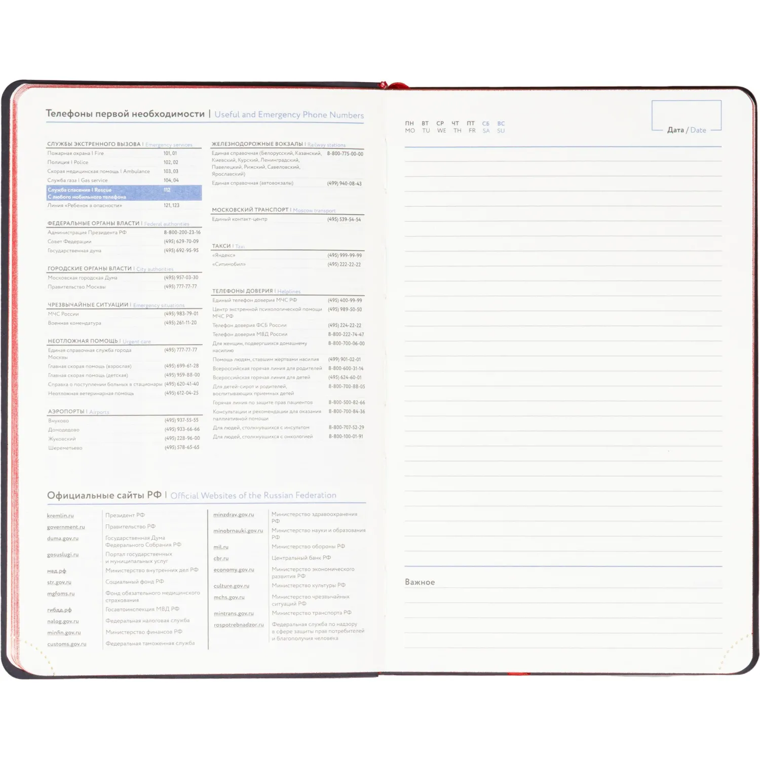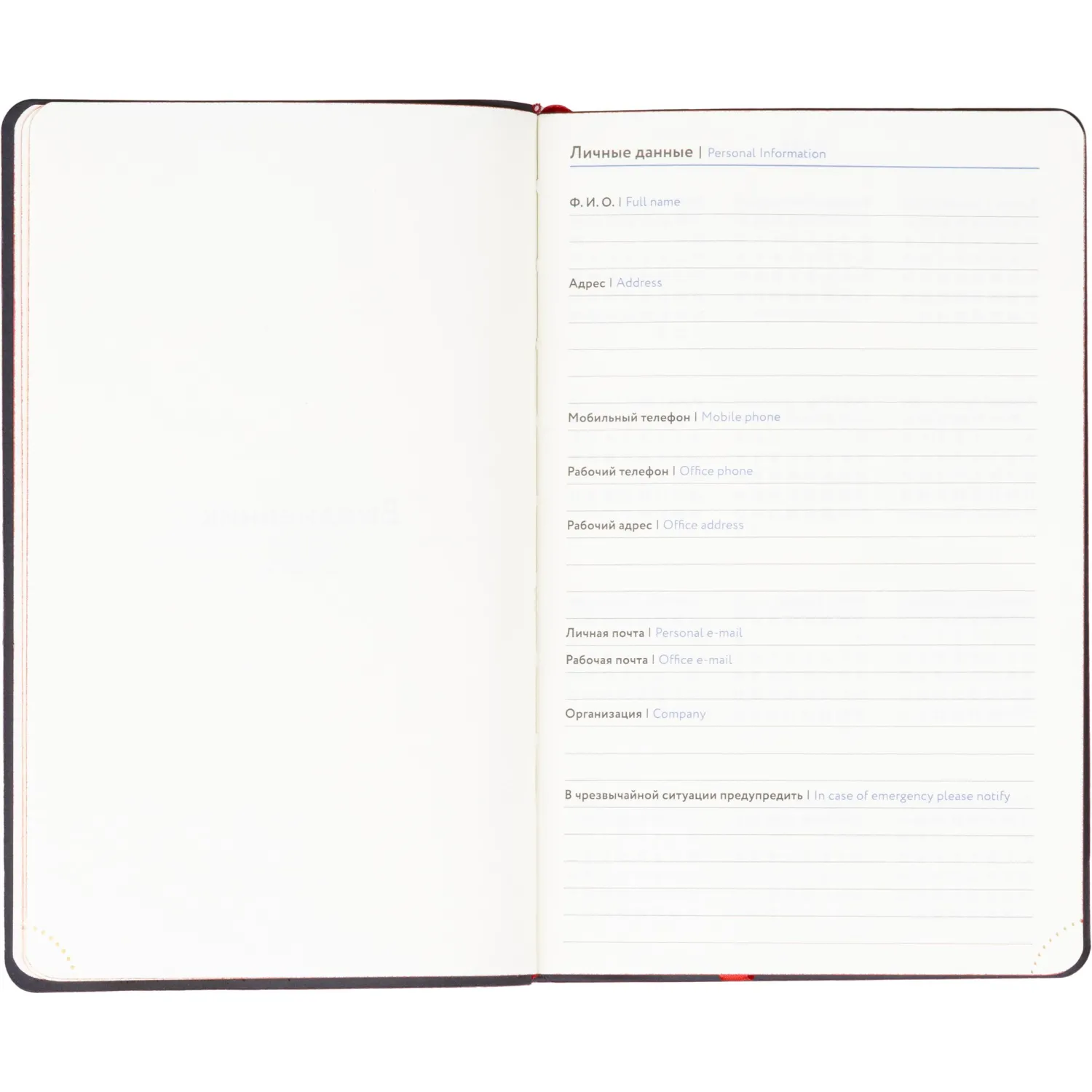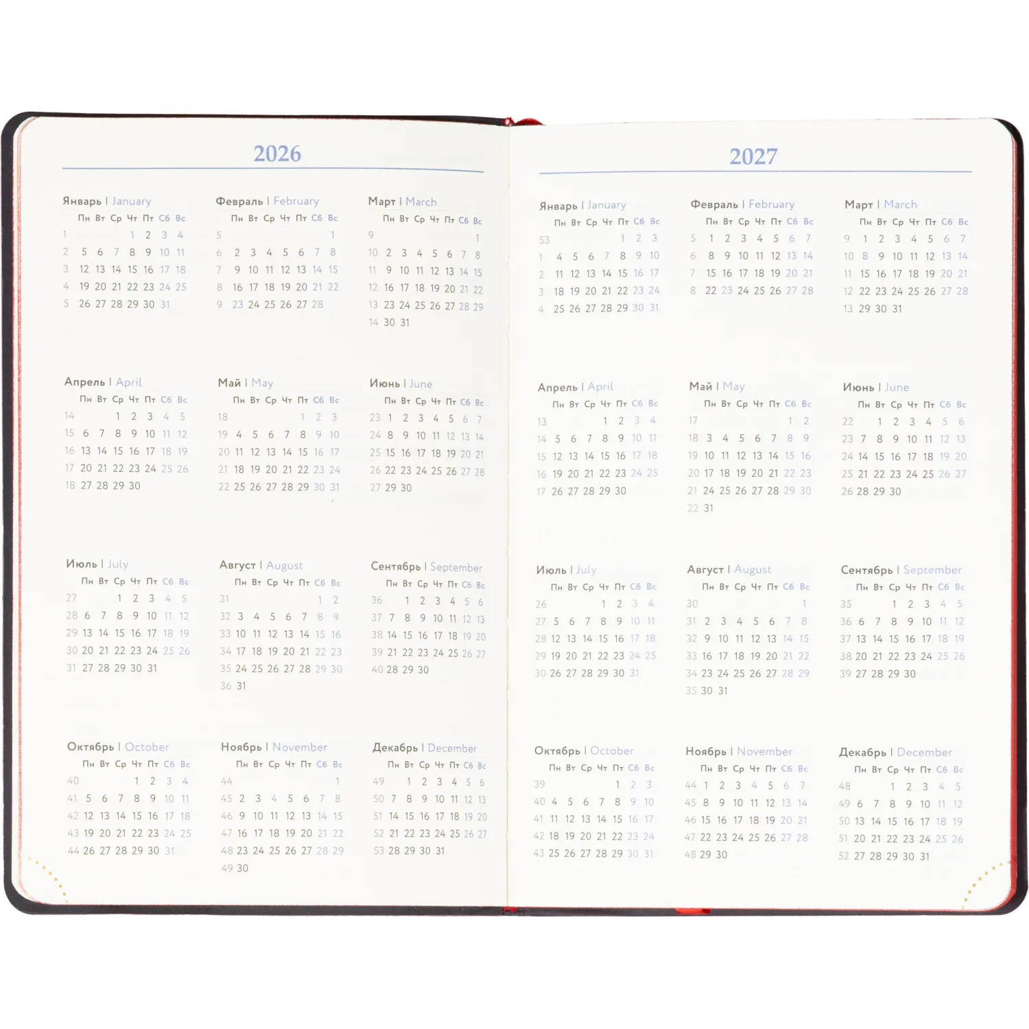 Размер изделия — 13.8×21.3 см. Внутри размещён календарь на два года. Ежедневник подходит под персонализацию.