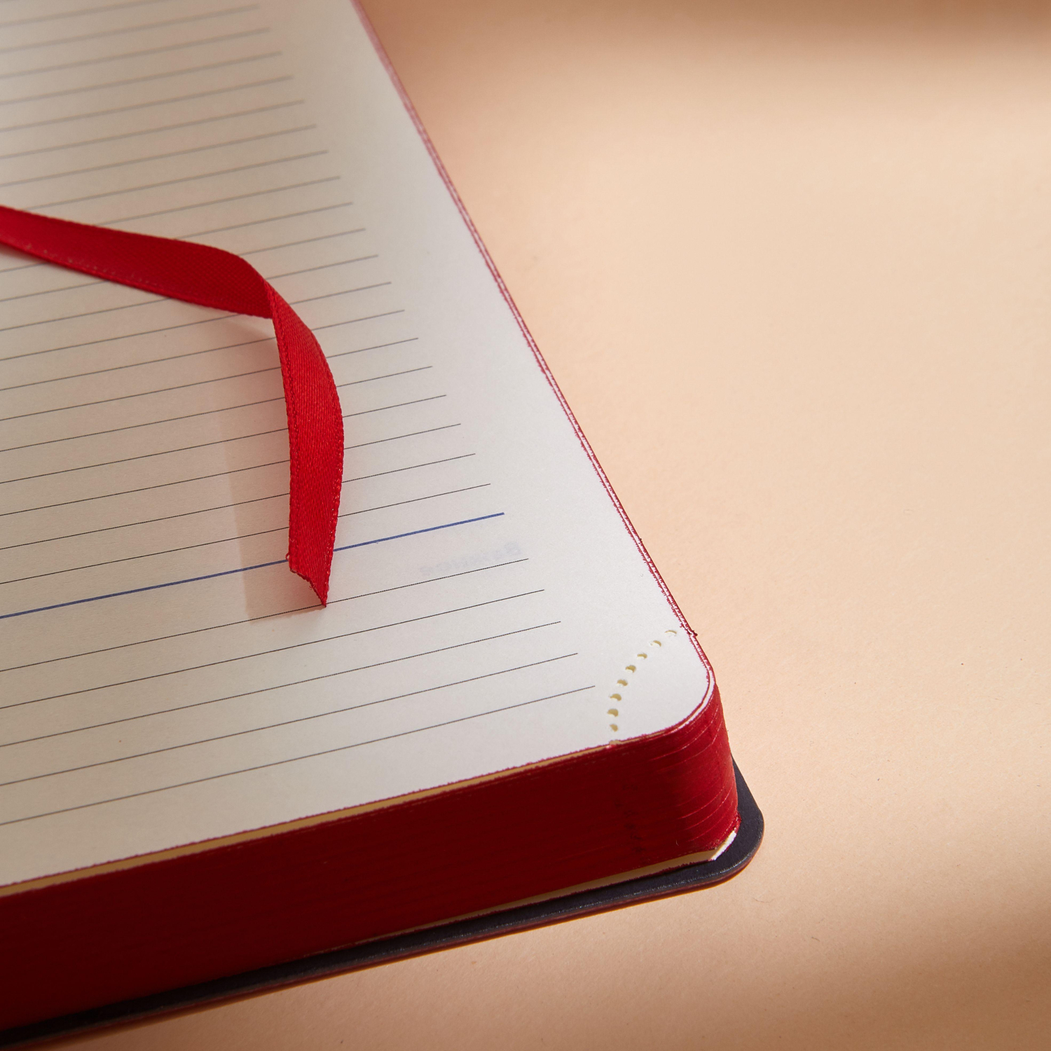 Блок состоит из 160 листов тонированной офсетной бумаги плотностью 80 г/кв.м. Страницы напечатаны в две краски и размечены в линейку. Вырубка блока и перфорация уголков позволяют удобно находить нужные страницы. Скруглённые углы листов повышают комфорт при перелистывании. Красный обрез придаёт изделию яркий и аккуратный внешний вид.