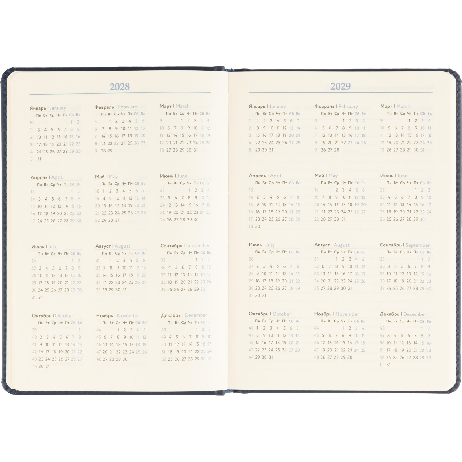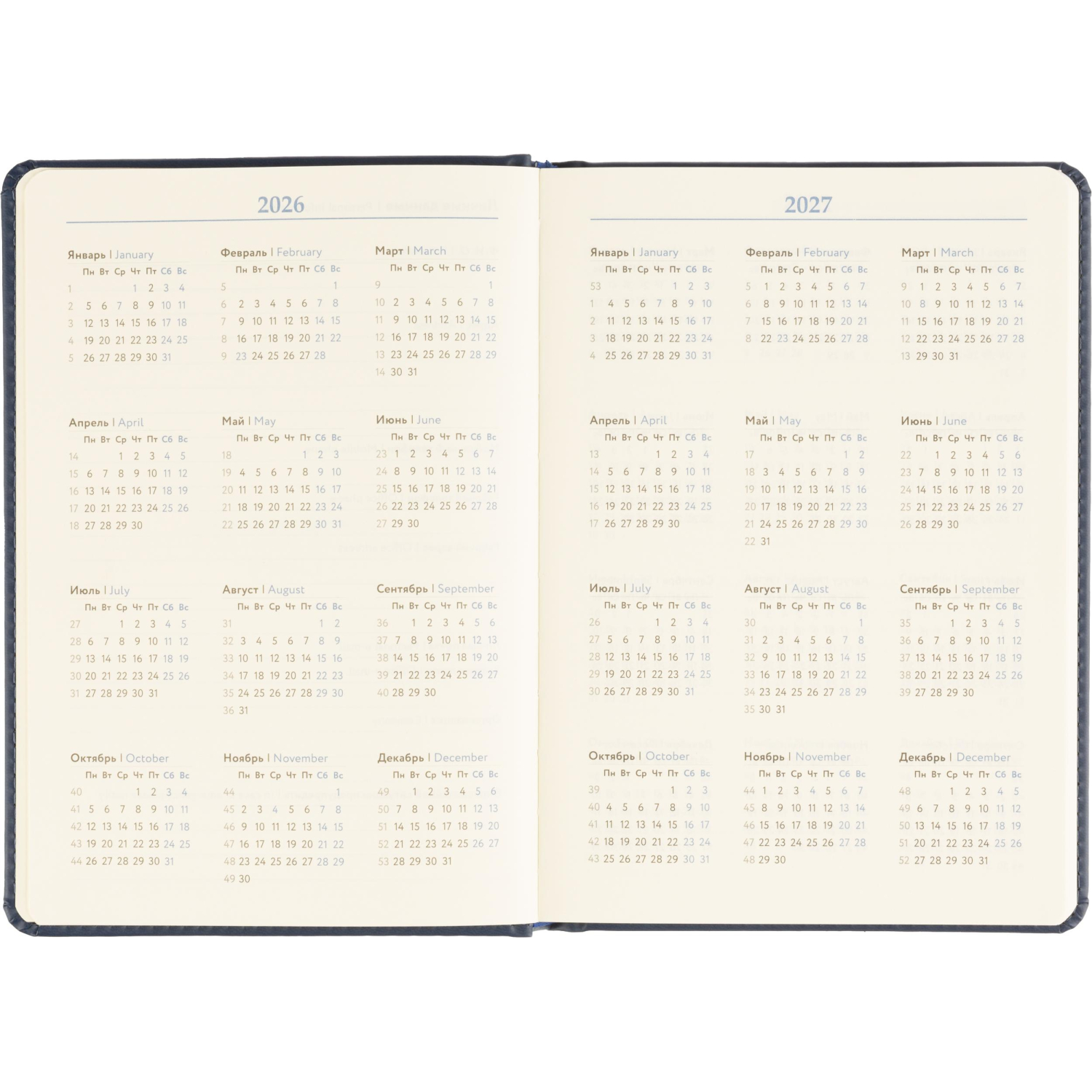 Размер изделия составляет 14×20 см. Ежедневник дополнен календарём на два года и может быть использован для персонализации.