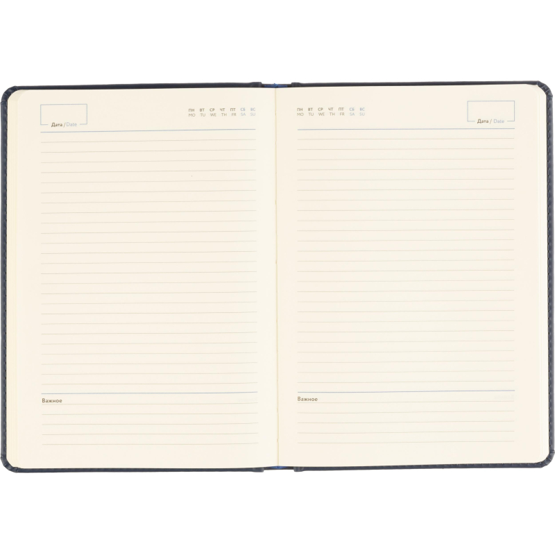Ежедневник формата А5 предназначен для повседневных записей, планирования задач и ведения заметок. Внутри — 136 листов из тонированной офсетной бумаги плотностью 80 г/кв.м с линовкой в линейку. Страницы напечатаны в две краски, что улучшает читаемость и делает блок визуально аккуратным.